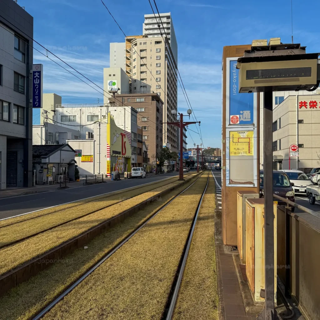 제일 가까운 노면전차 정류장이 미야코도리 정류장이라 거기서 고리모토 정류장까지 가서 조금 걸어가기로 했어요.