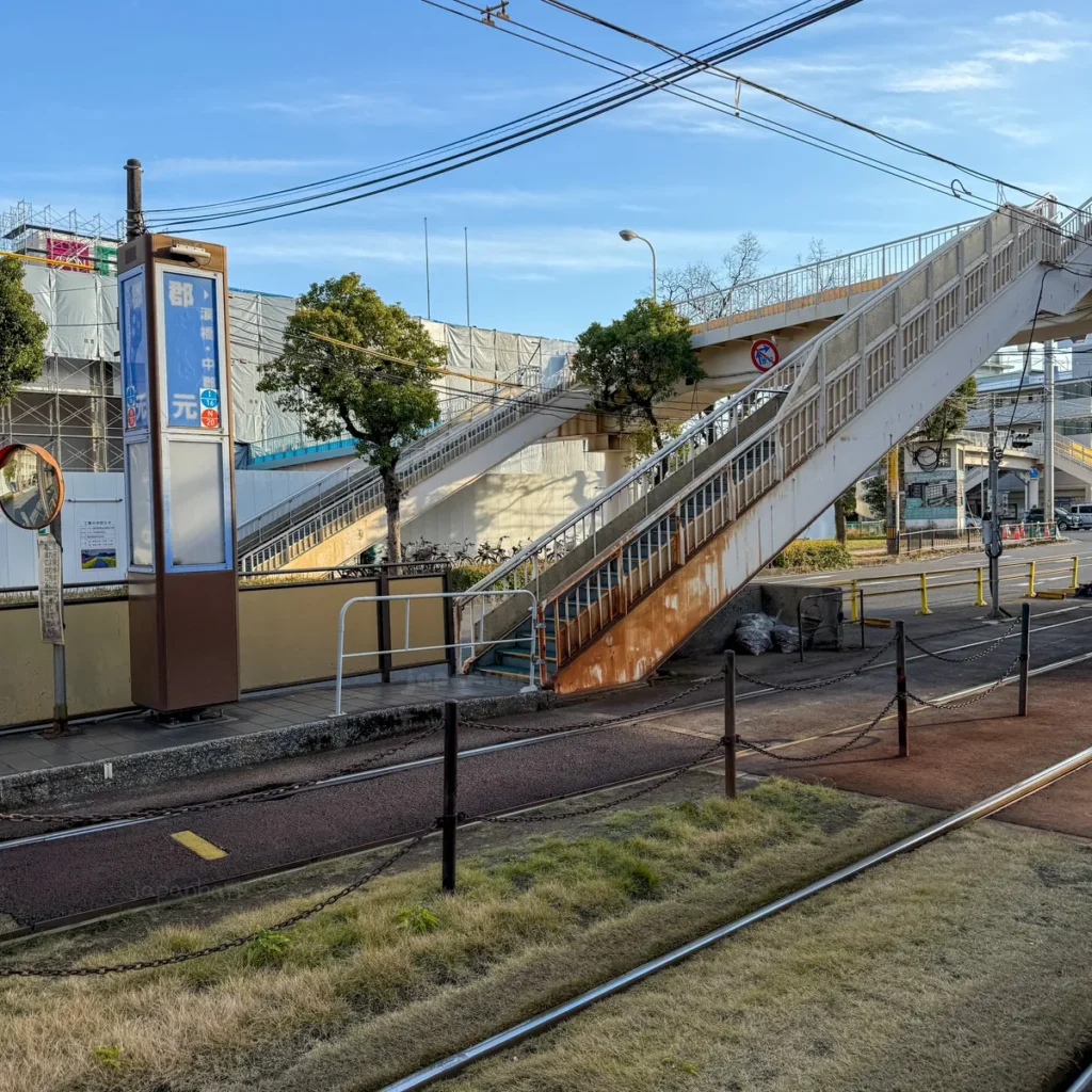 고리모토 정류장에서는 육교를 타고 길을 건너가야 해요.