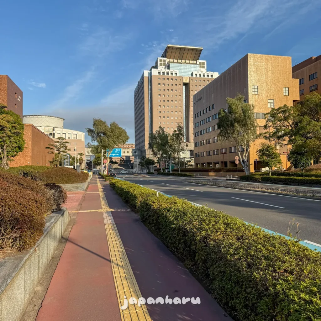 눈 앞에 보이는 이 건물이 ‘가고시마 현청’이에요.