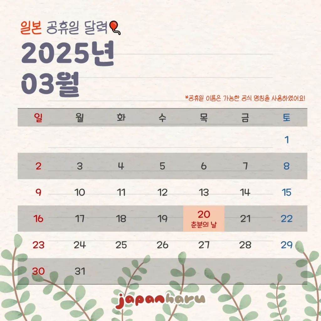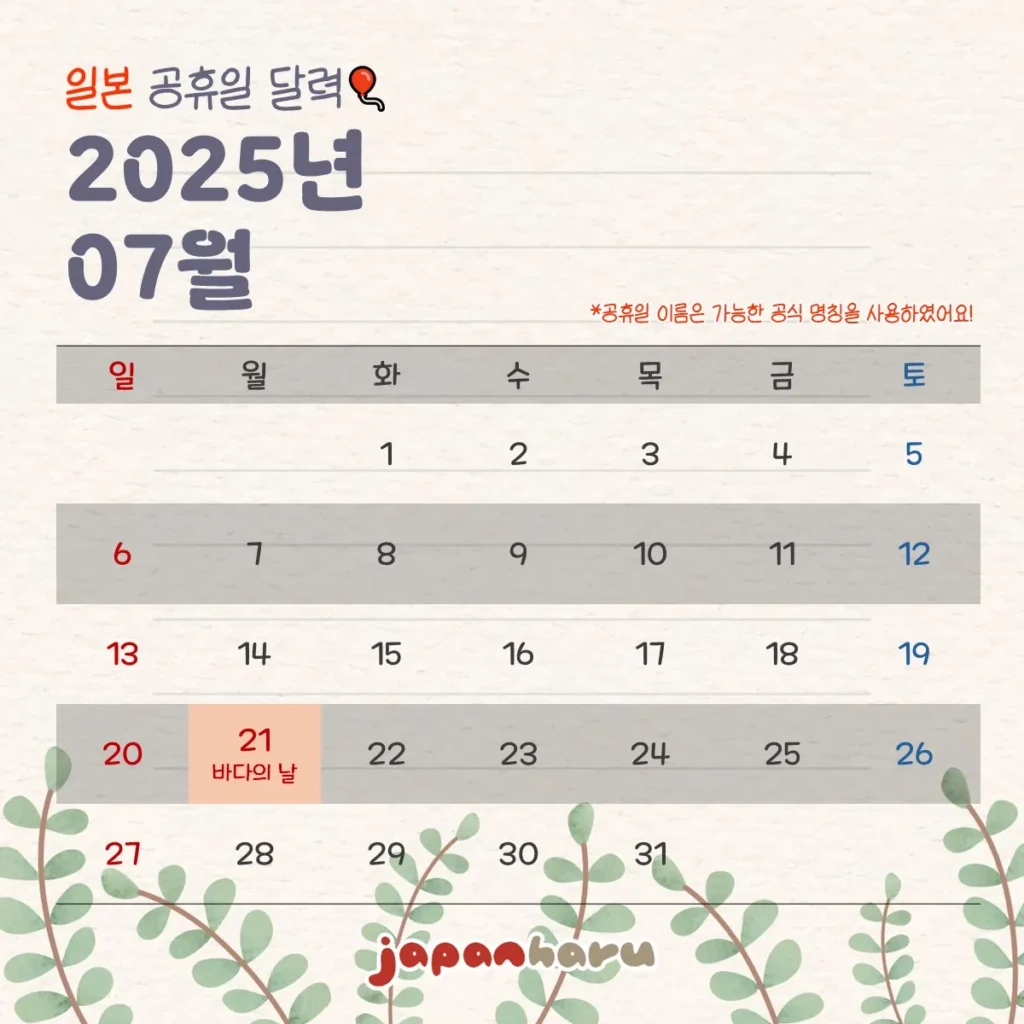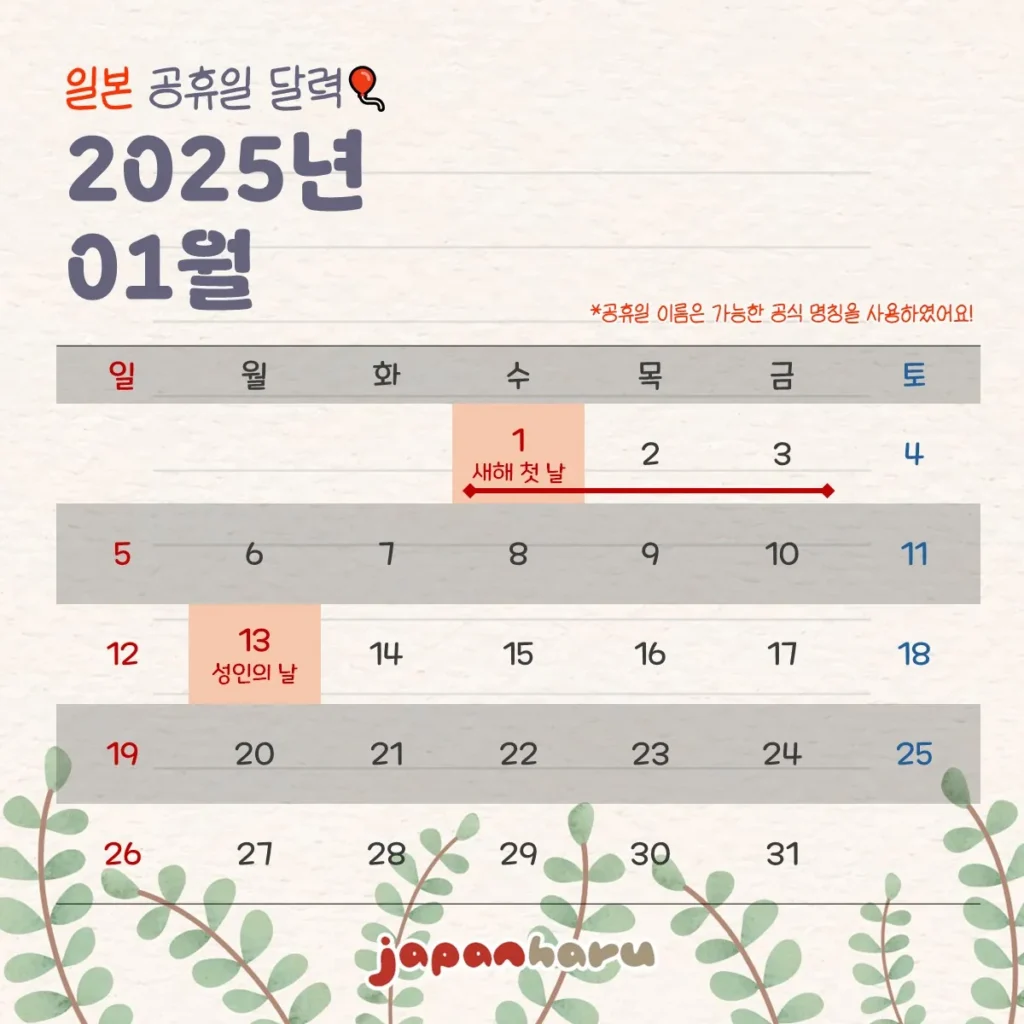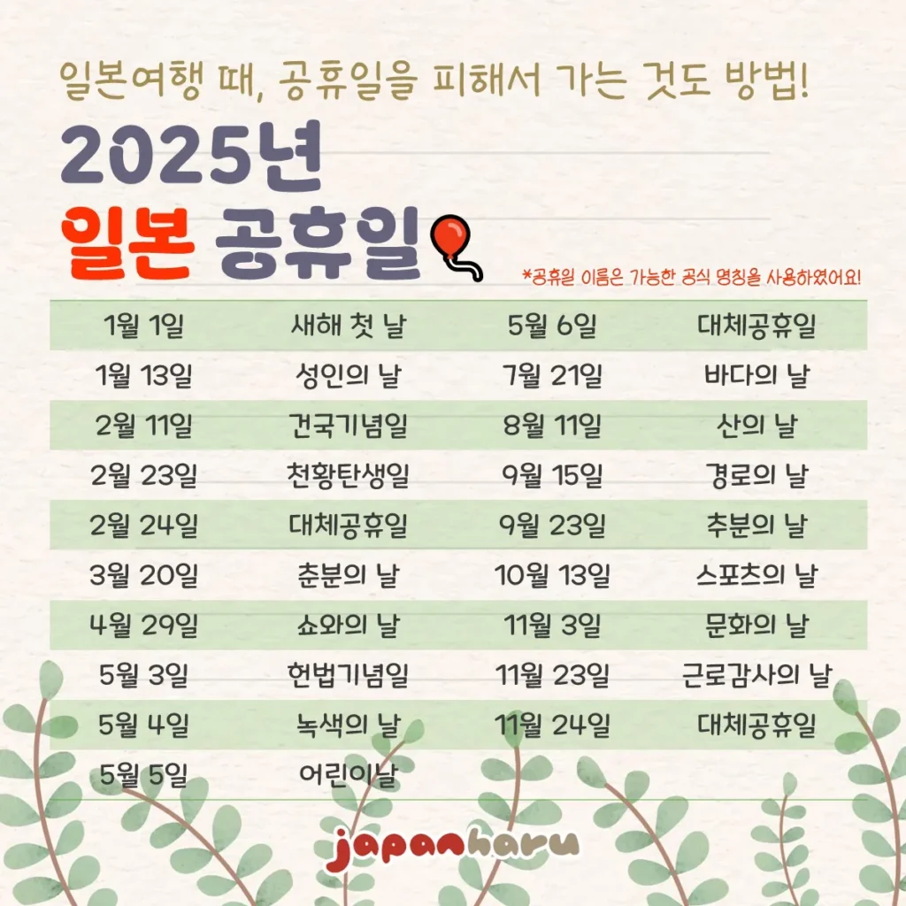 📆 일본여행을 주로 하다보니 찾아보게 된 ‘2025년 일본 공휴일’이에요.