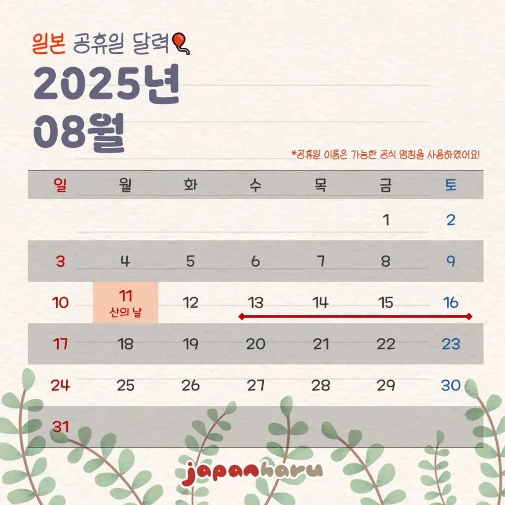 5월의 골든위크, 8월의 오봉, 그리고 연말연시까지 이렇게 3개 시즌이 일본 3대 휴일기간이라고도 불려요!