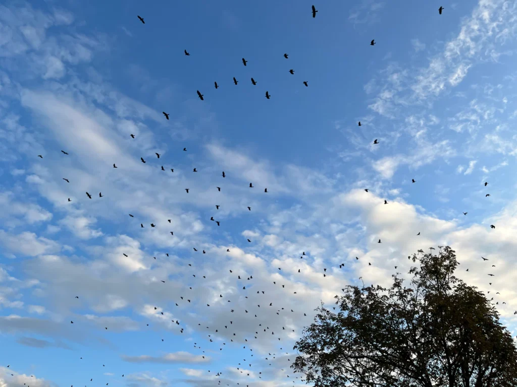 새 한 마리 한 마리는 귀엽기도 하고 멋지기도 하지만 저렇게 떼로 날아가니 조금 무서운 느낌도 드네요.