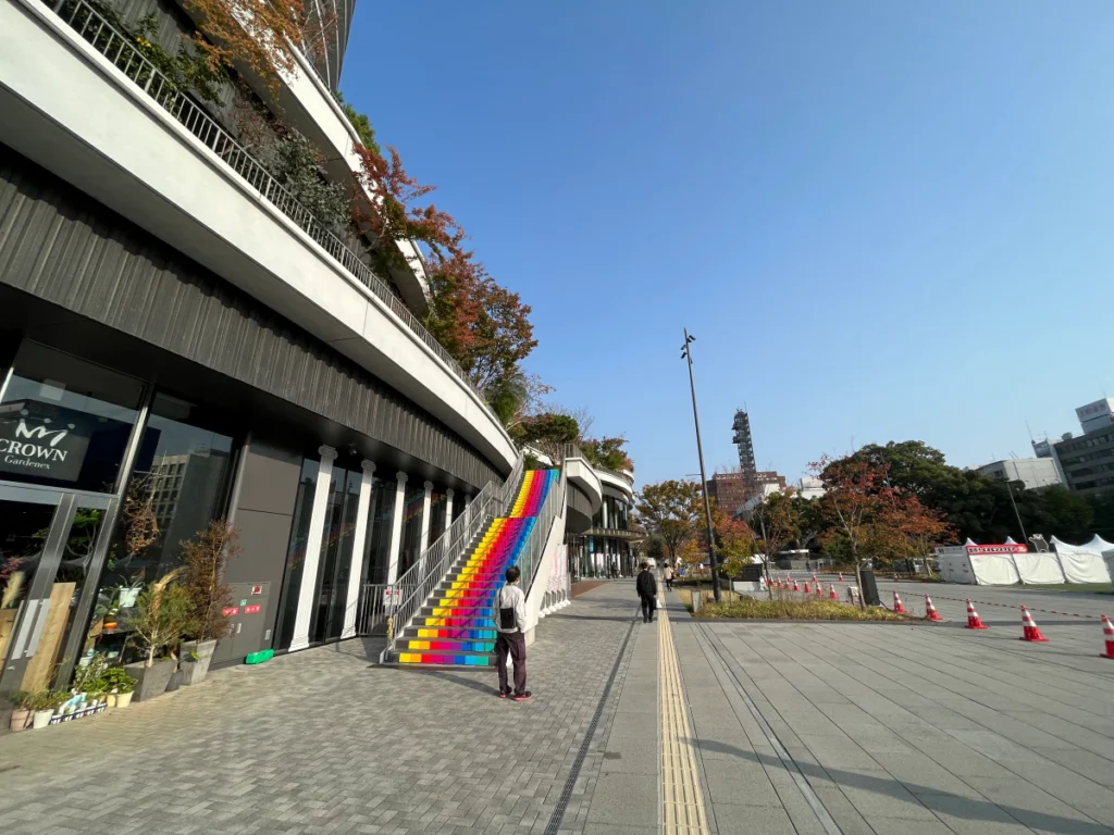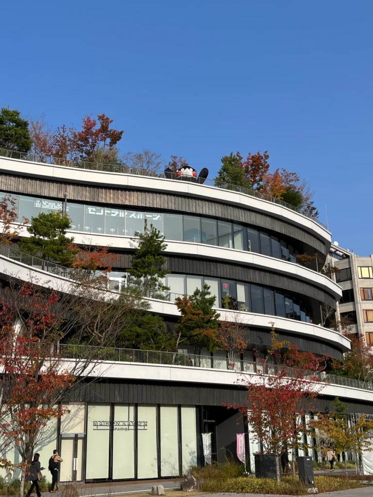 어제는 밤이라 잘 안 보였는데 사쿠라마치 쇼핑몰 옥상에 마스크 쓴 쿠마몬이 잘 보여요.