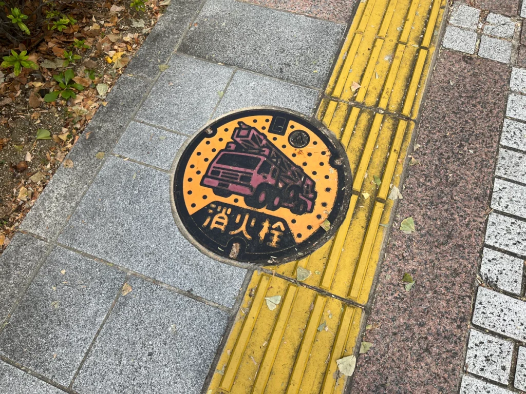바닥에 보니 소방차 그림이 그려진 소화전이 보여요.