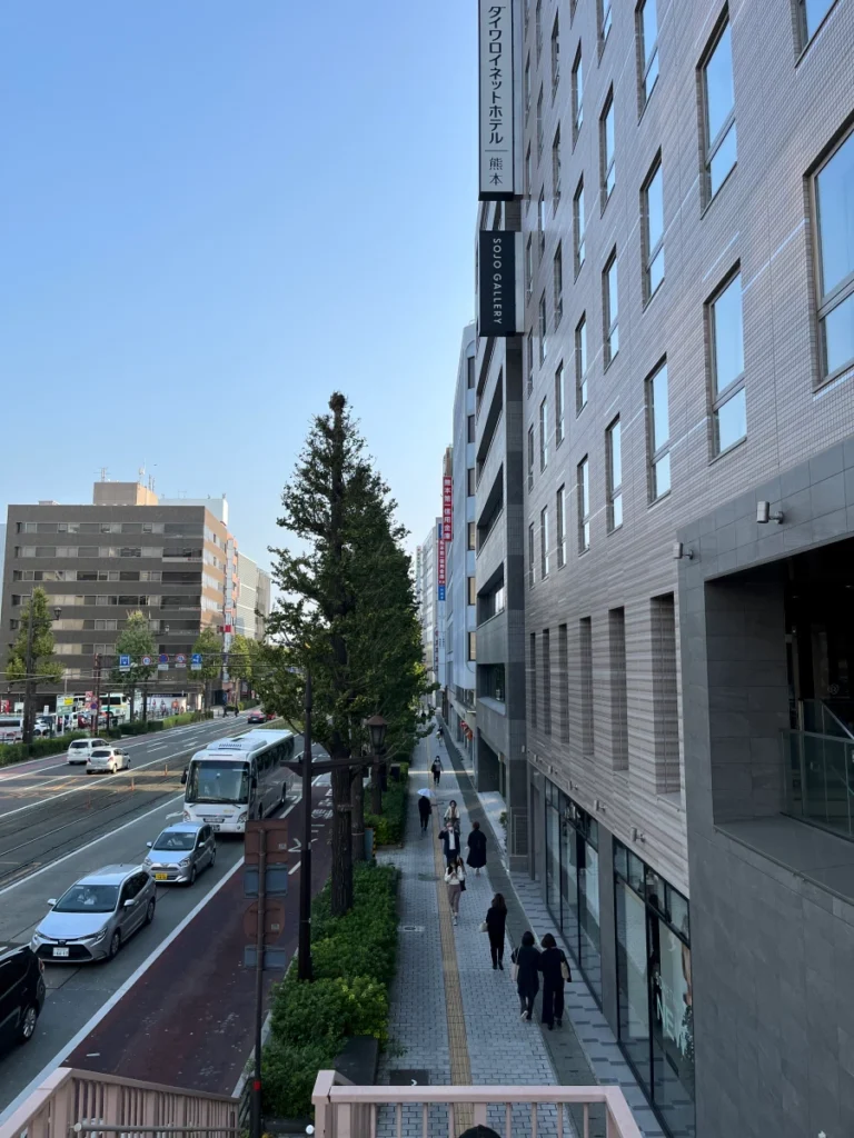 걷다가 문득 시청 전망대가 몇 시부터 하는지 찾아보고 마침 열려있는 시간이라 시청 전망대를 한 번 더 가보기로 하고 시청으로 향하고 중간중간 평일 아침의 구마모토 시내를 구경해요.