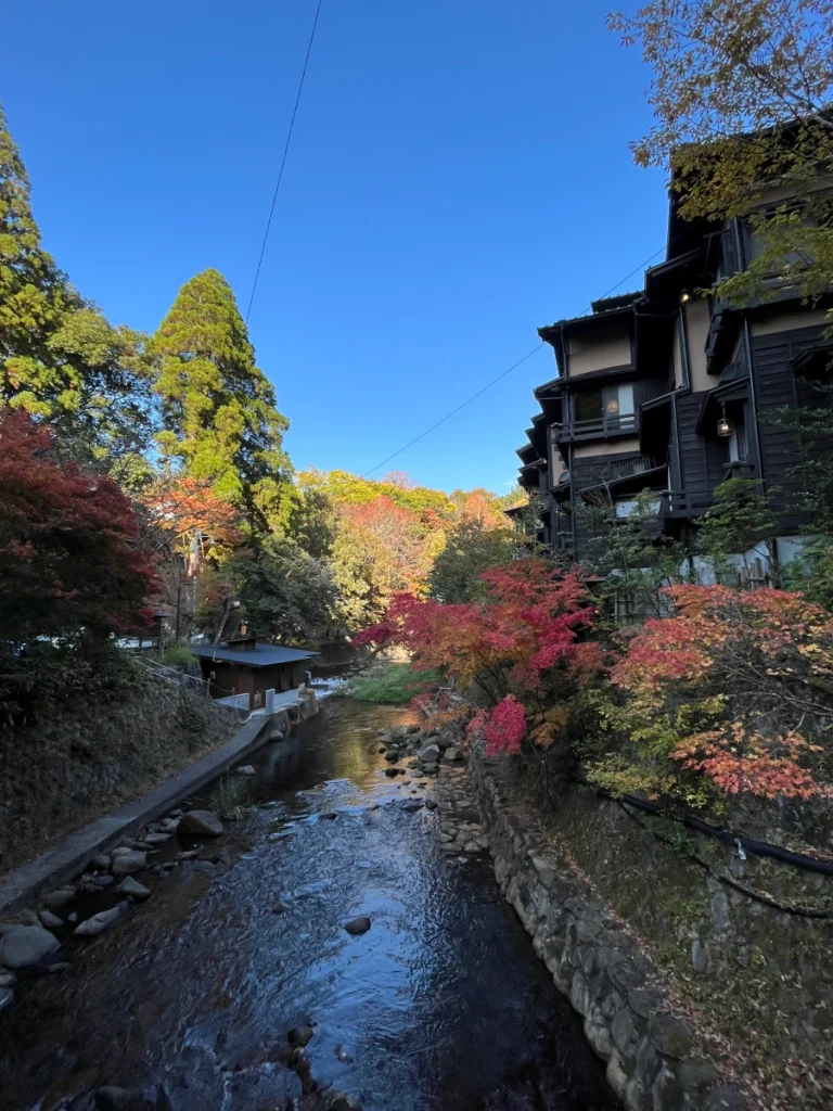 강 양쪽으로 군데군데 료칸이 보이네요.