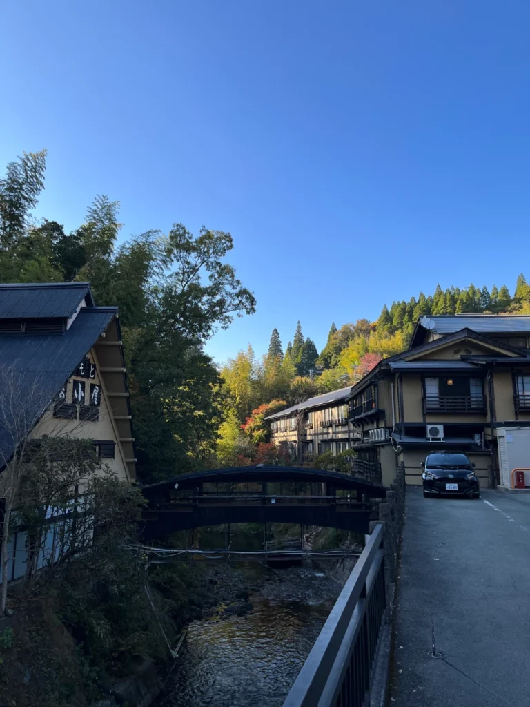 료칸이 있는 오다 온천으로 가기 전에 쿠로카와 온천을 구경하러 잠시 들러봐요.