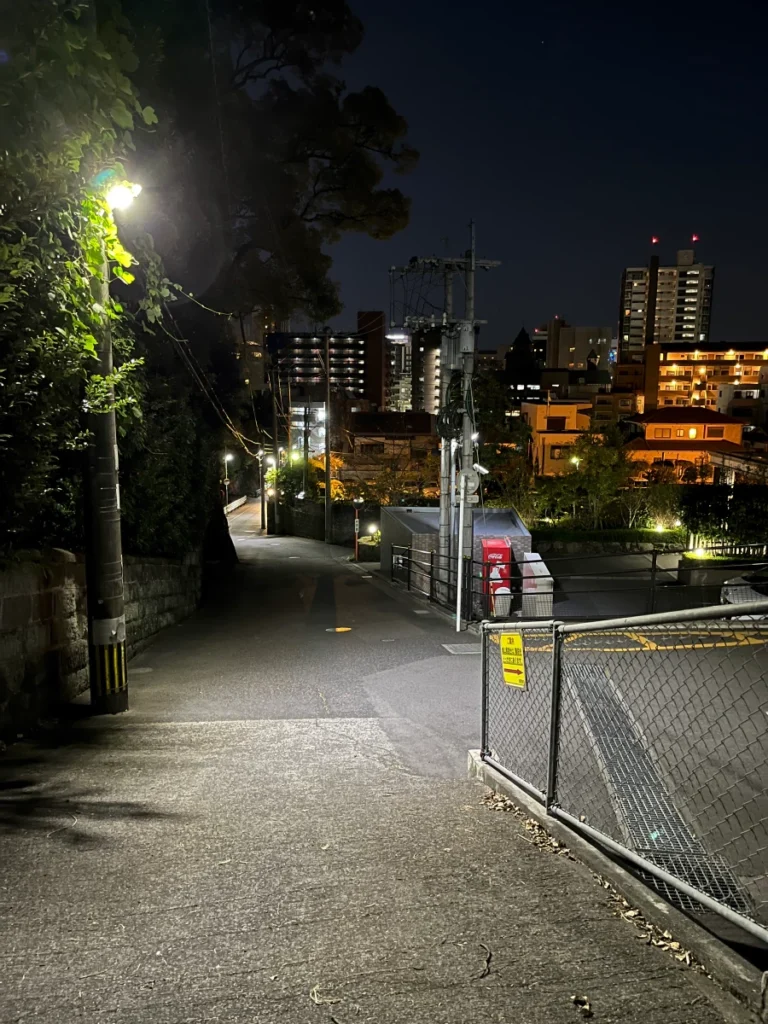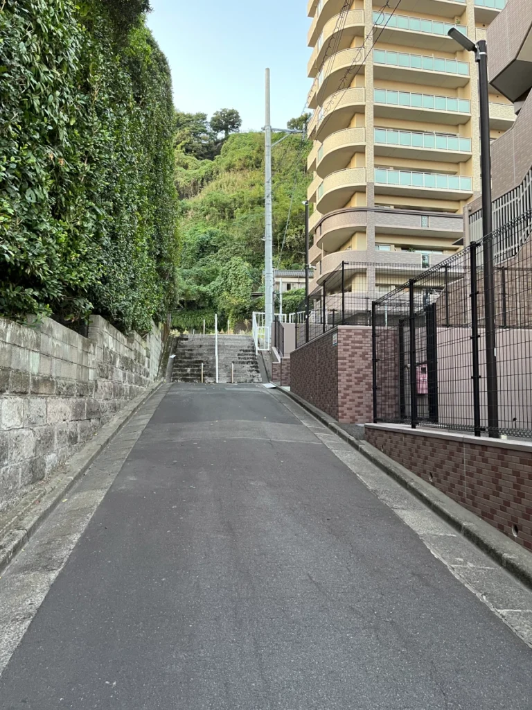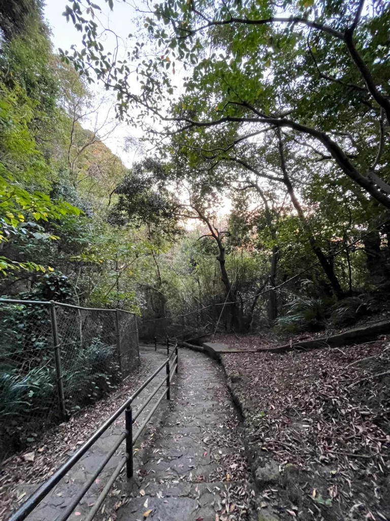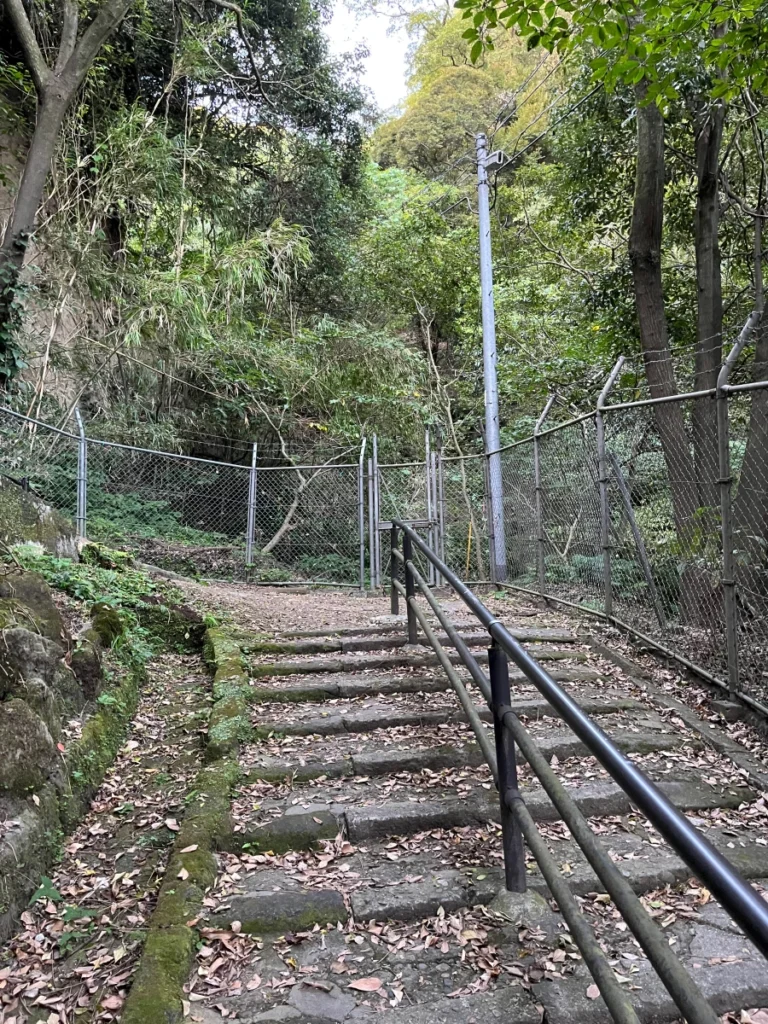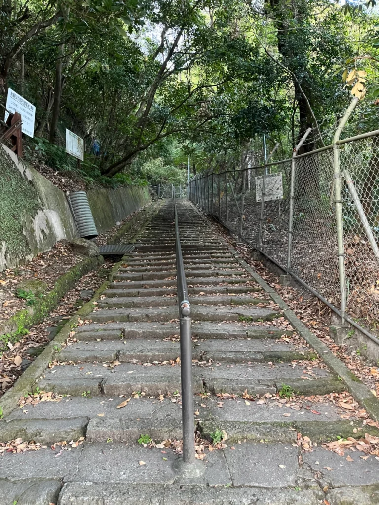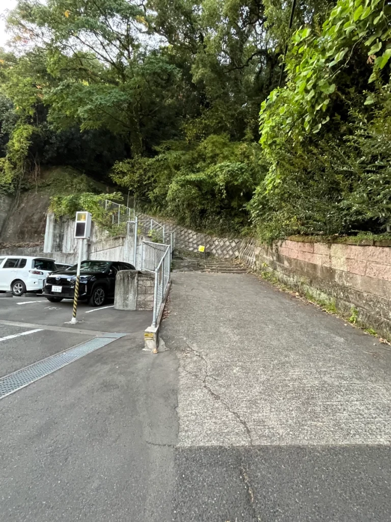 시로야마 공원 전망대로 올라가기 위한 길 앞에 왔어요.