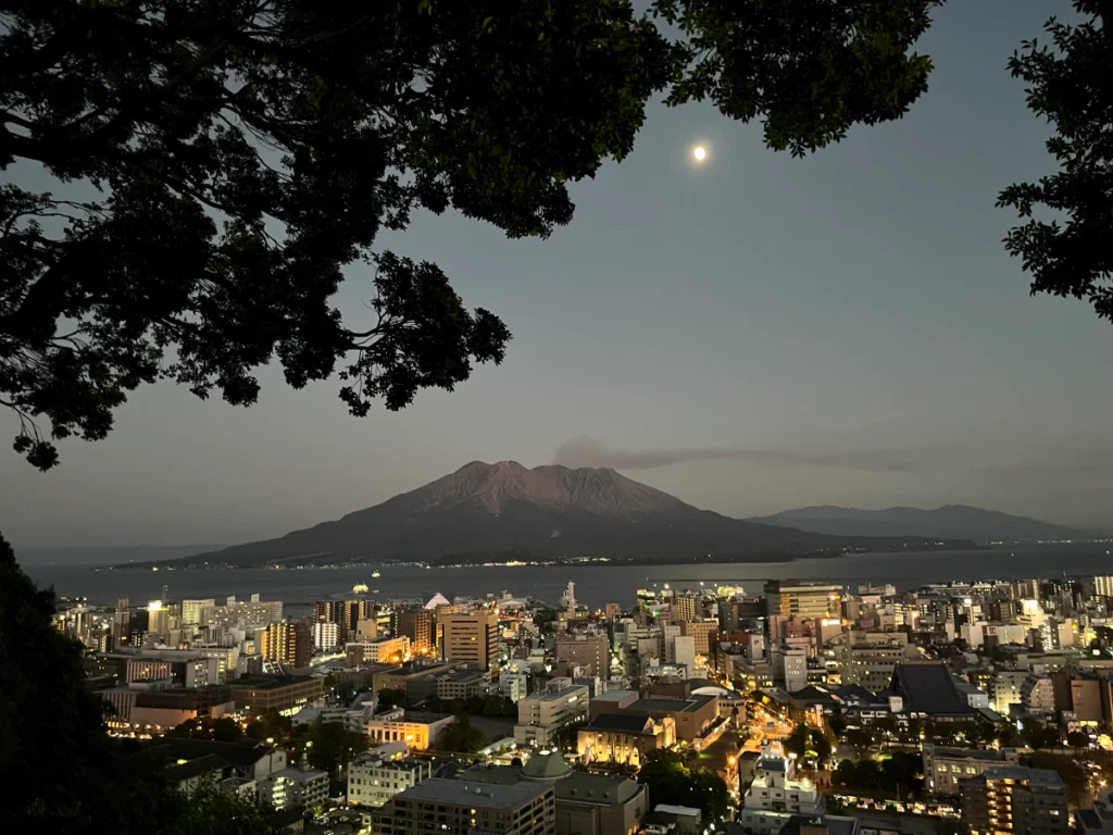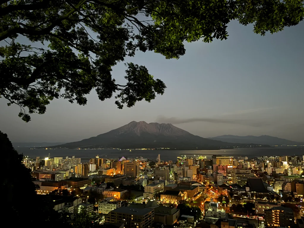 시로야마 공원 전망대에서 보는 사쿠라지마 노을&야경