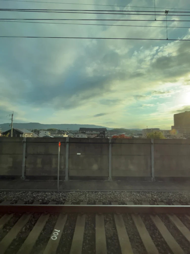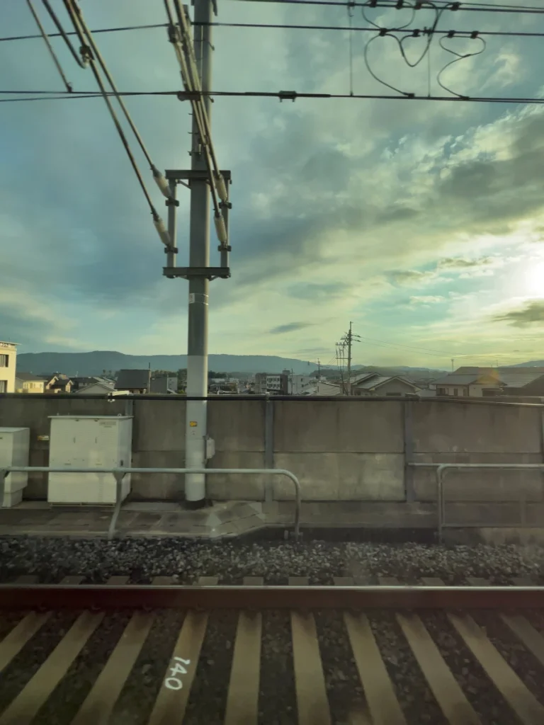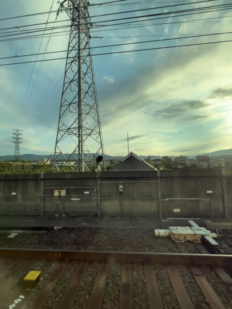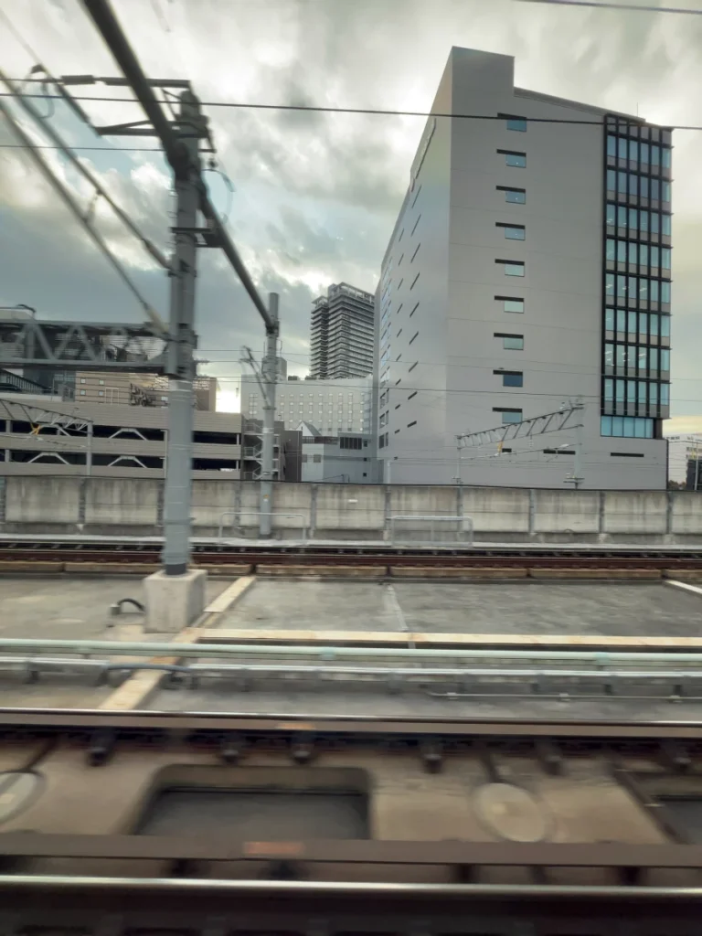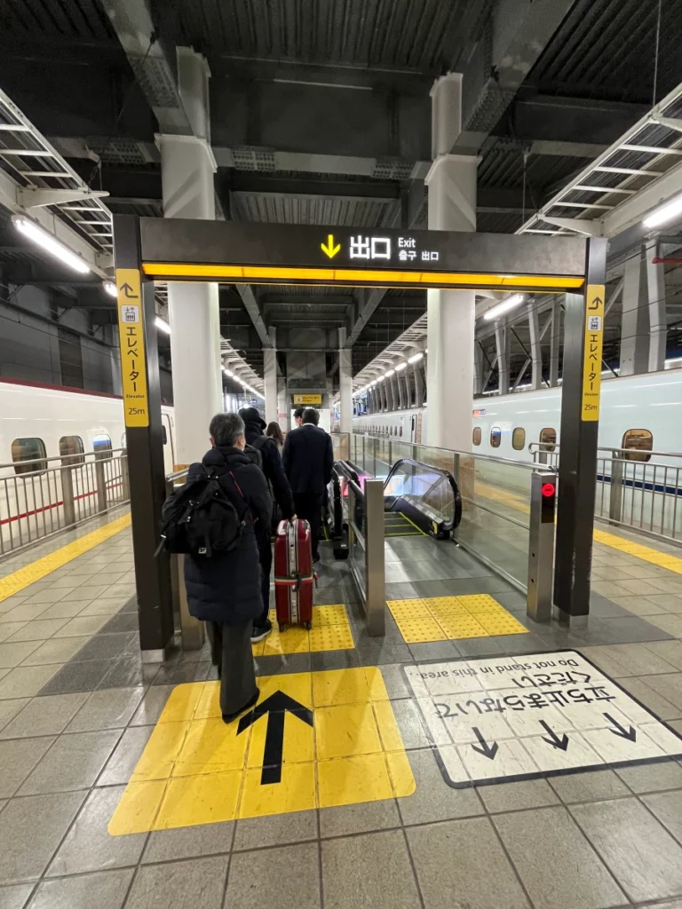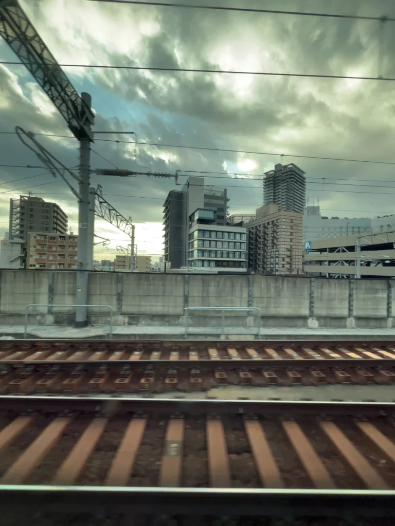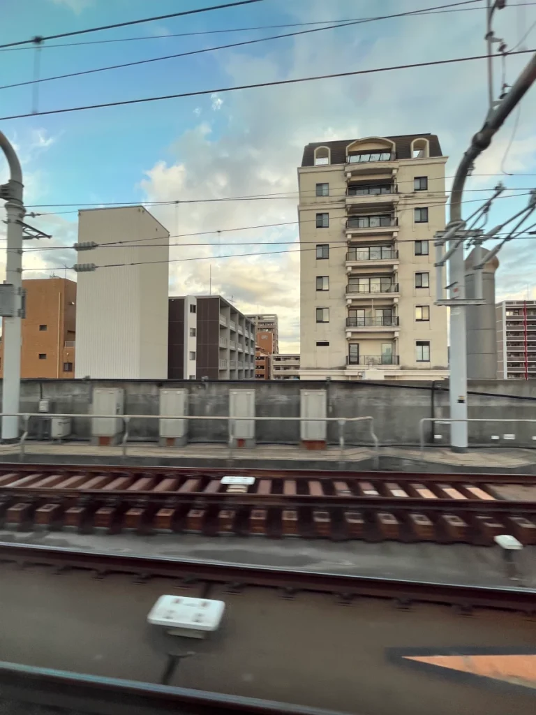 아래쪽으로 내려가는 신칸센 열차가 보이네요.