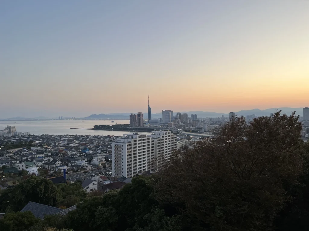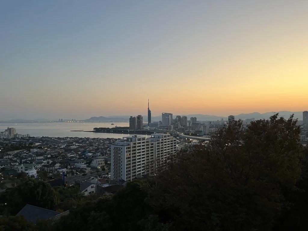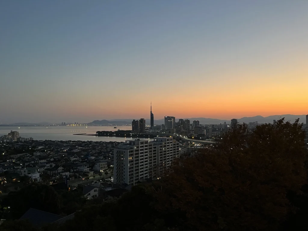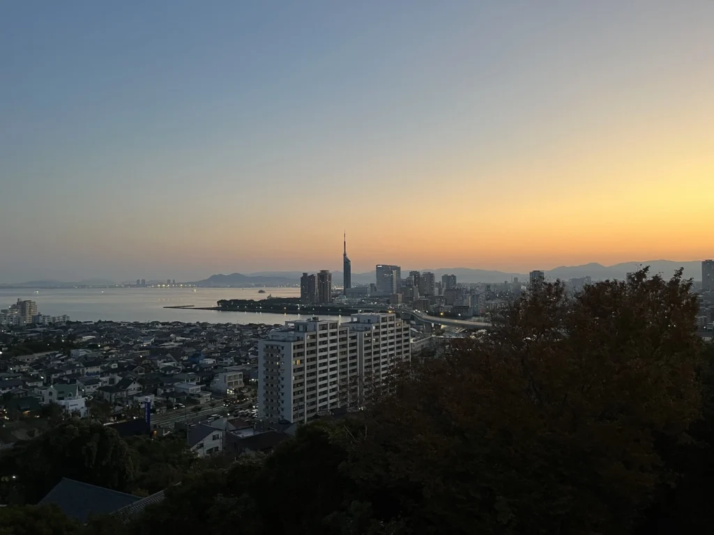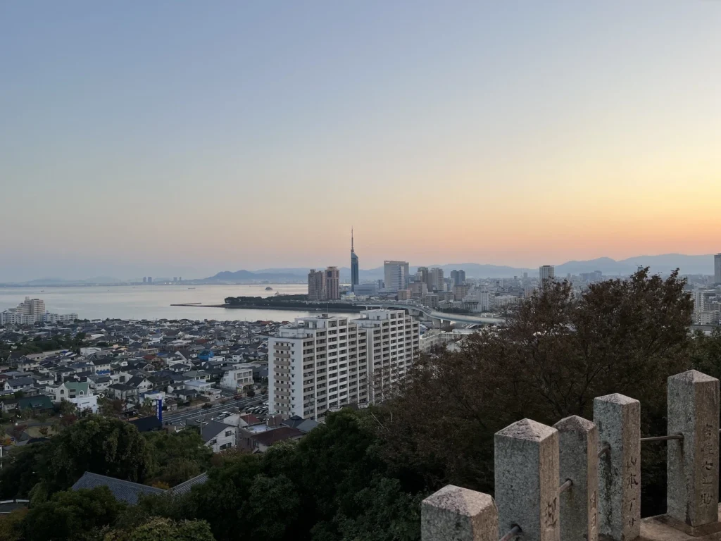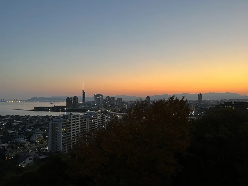 후쿠오카 타워에서 오른쪽으로 꽤 떨어진 곳을 보니 저 곳에서 해가 뜰 것이라는 느낌이 드네요.
