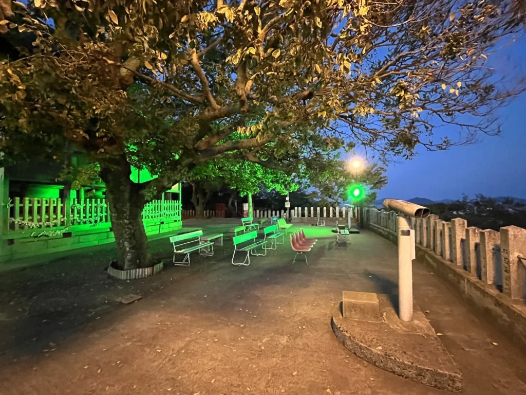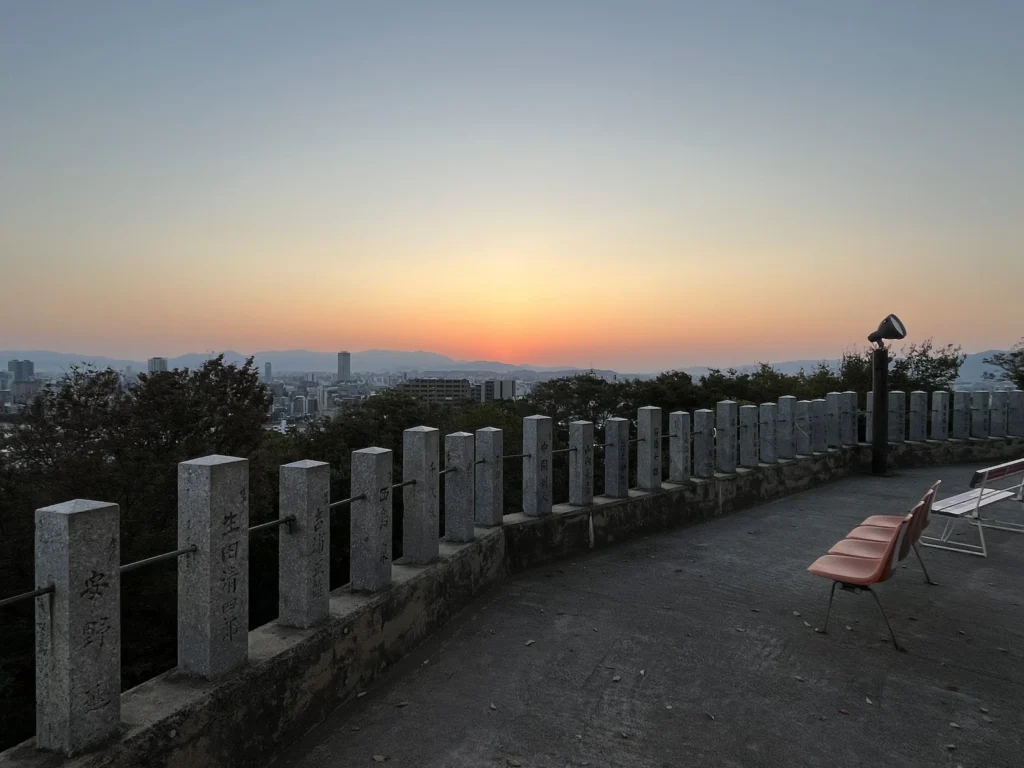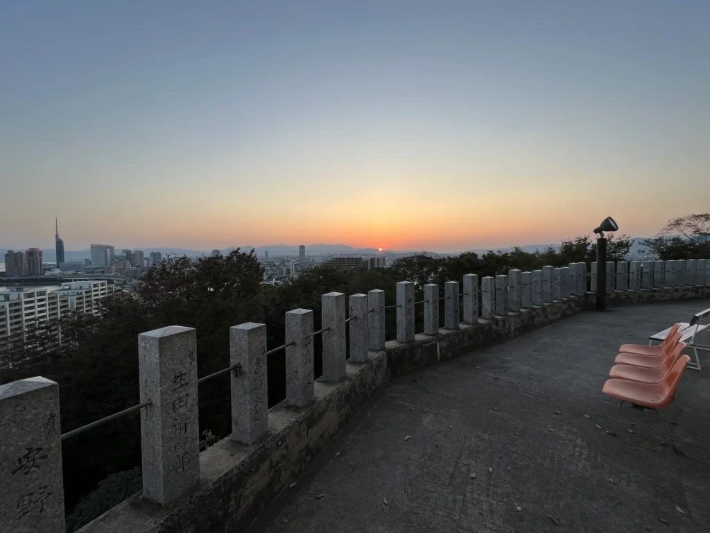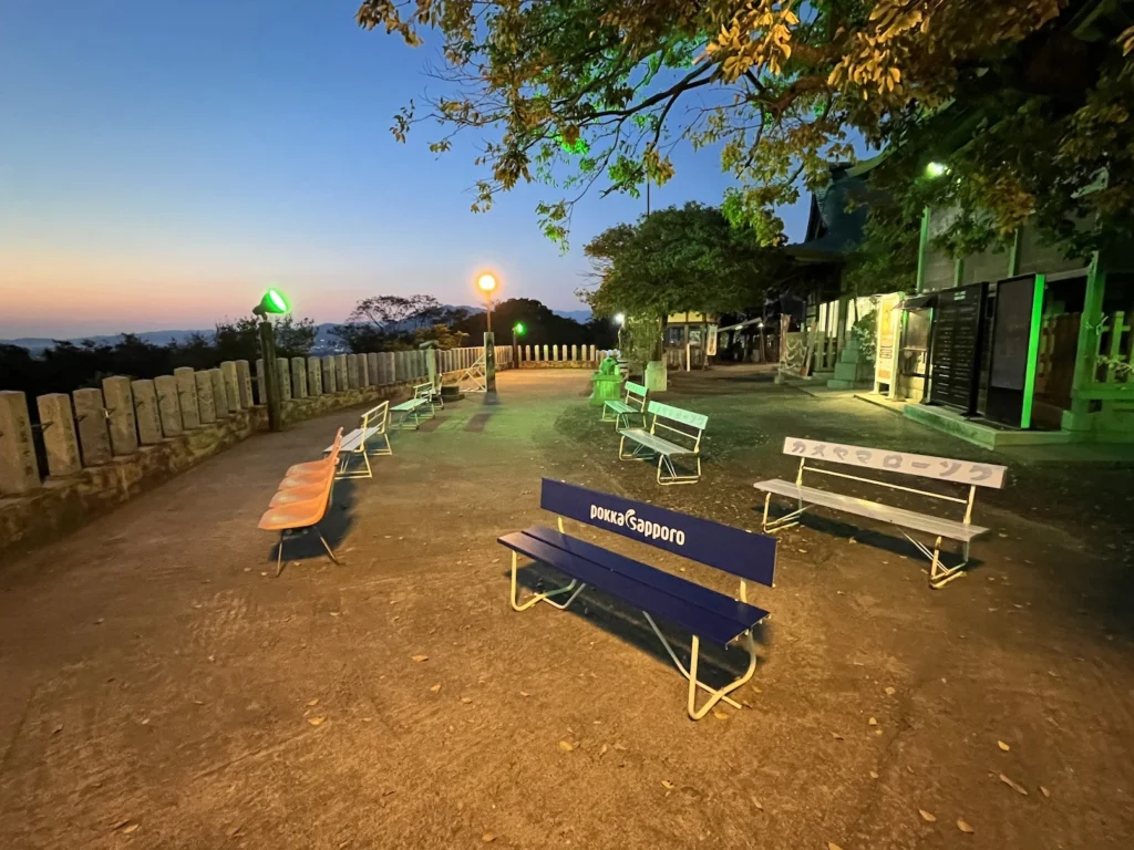 신사에는 후쿠오카 풍경을 볼 수 있게 많은 벤치가 설치되어 있어요.