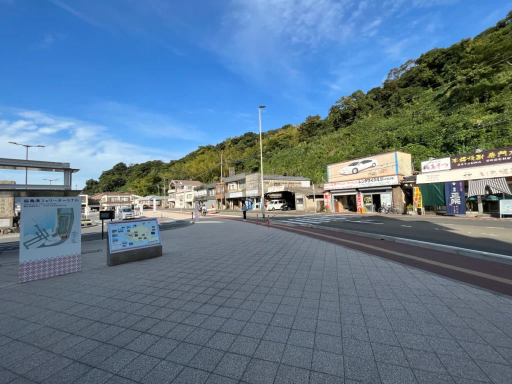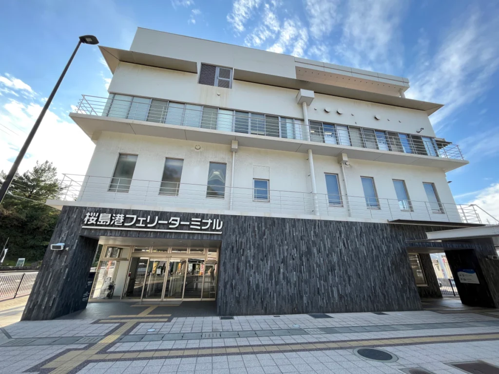 가고시마에서 페리를 타고 들어오면 도착하는 곳, 사쿠라지마 페리 터미널이에요.