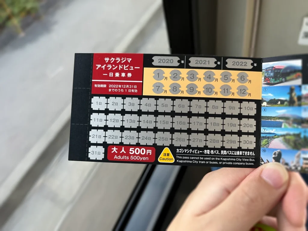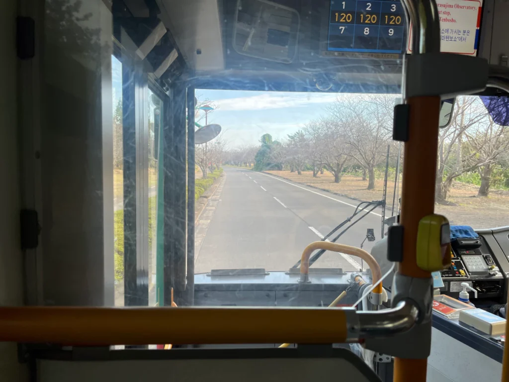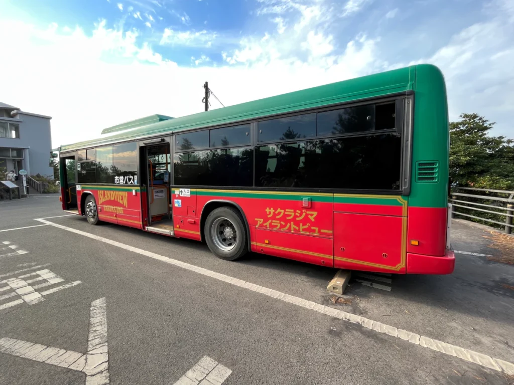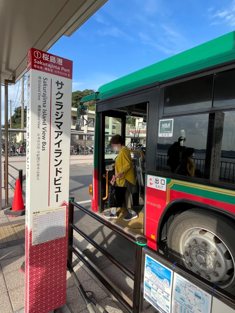 사쿠라지마 페리 터미널 앞에 있는 버스 정류장에서 아일랜드뷰 버스를 탈 수 있어요.