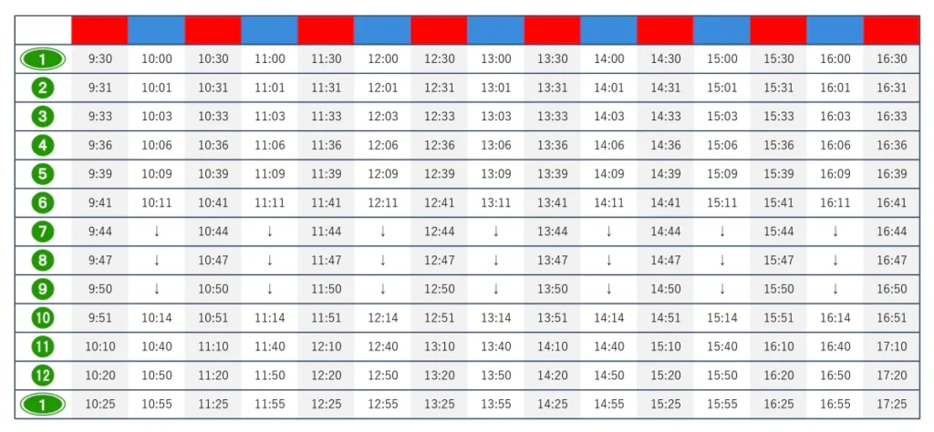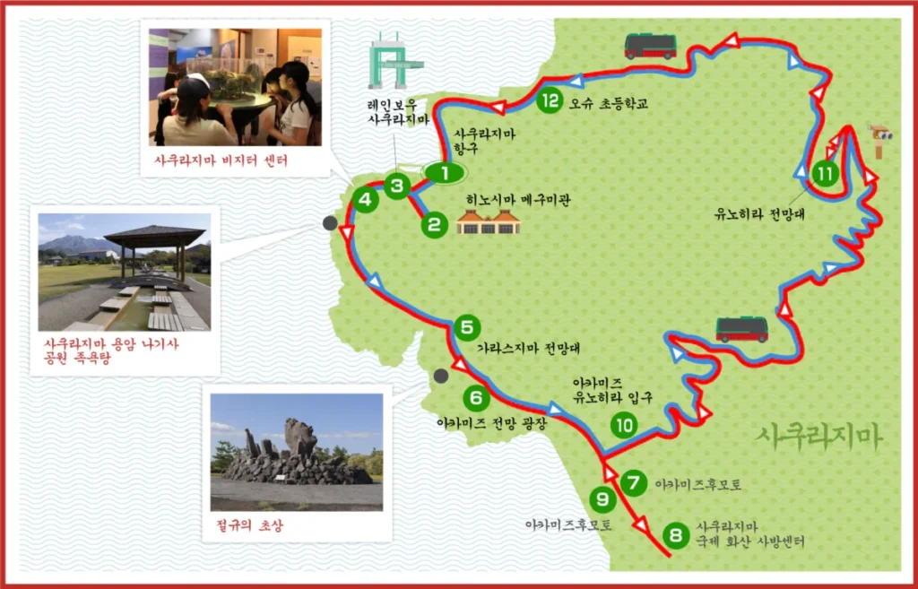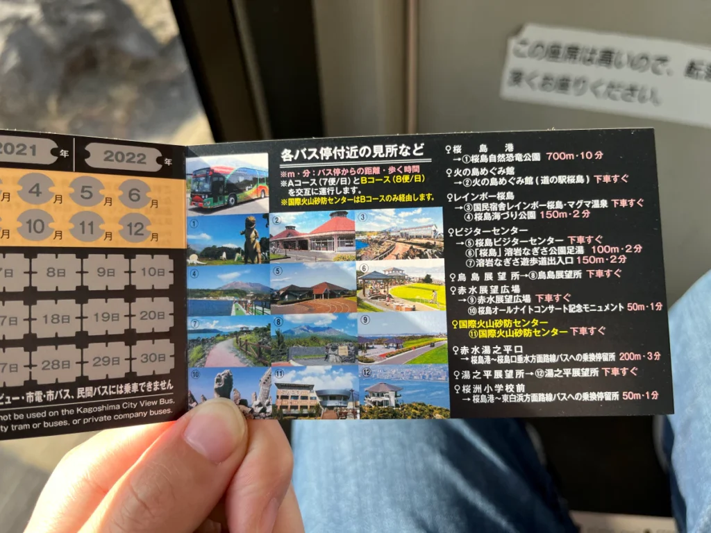 사전에 찾아보았기도 했고 사쿠라지마 페리 터미널에서 찾은 팜플렛에서도 위와 같이 버스 노선이 있었어요.