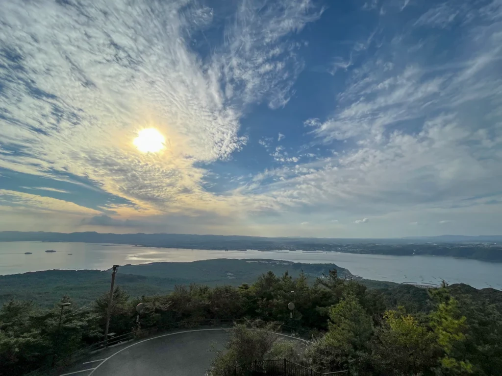 유노히라 전망대에 정차하고 내려서 찍은 사진이에요.