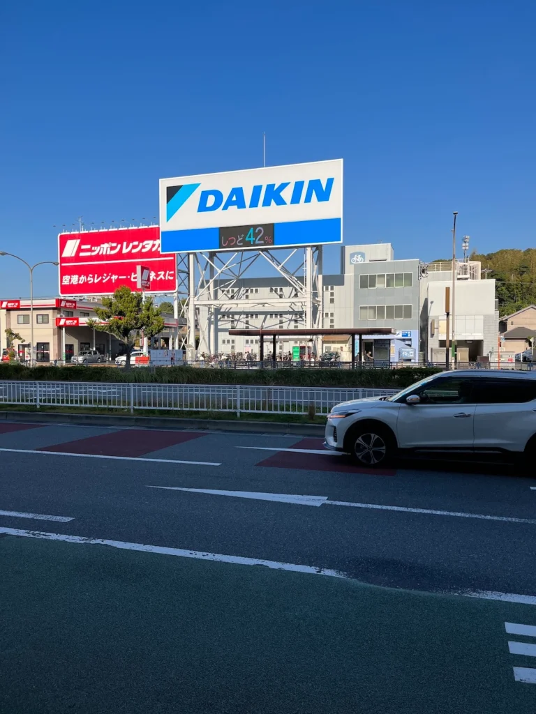 기다리다가 본 것인데 정면에 보이는 광고판에 습도를 나타내는 표시가 보이네요.