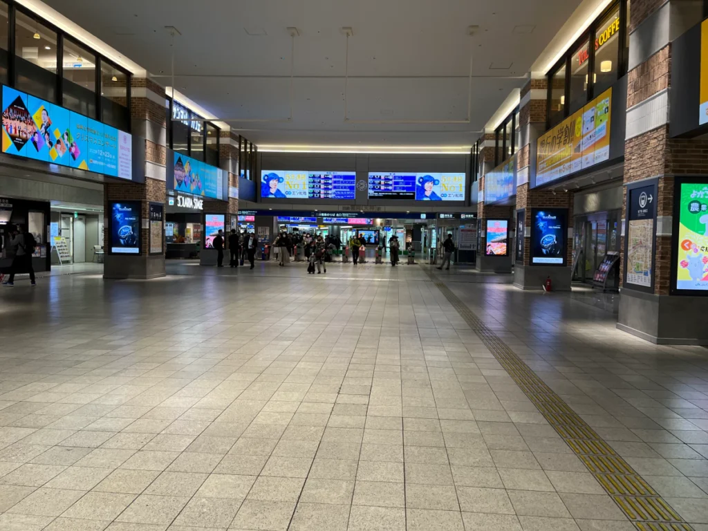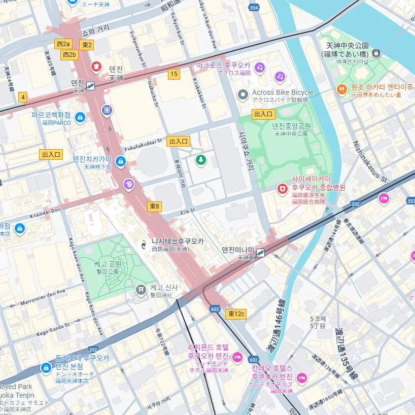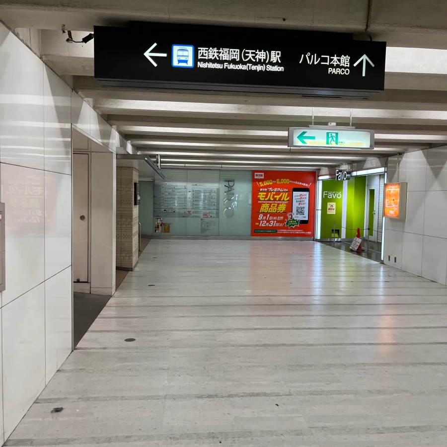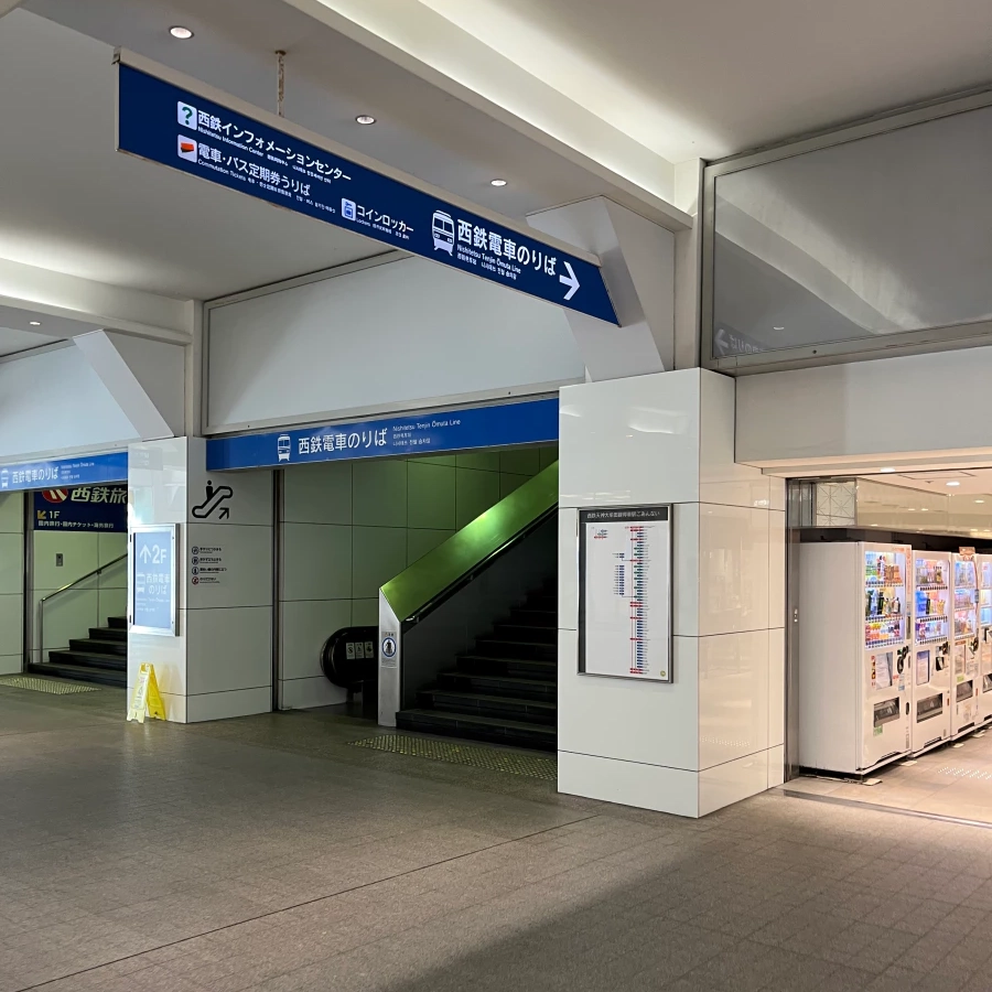 지하철 덴진역과 니시테츠 전철을 탈 수 있는 니시테츠 후쿠오카역과는 떨어져 있어요.