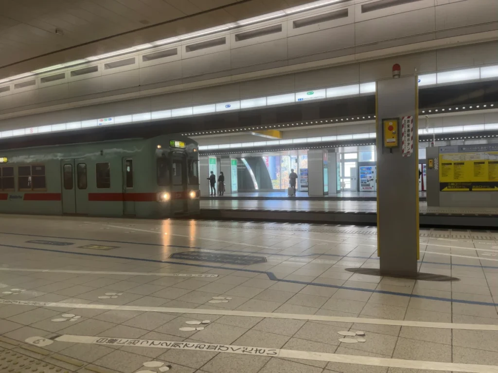 니시테츠 후쿠오카역 승강장이에요.