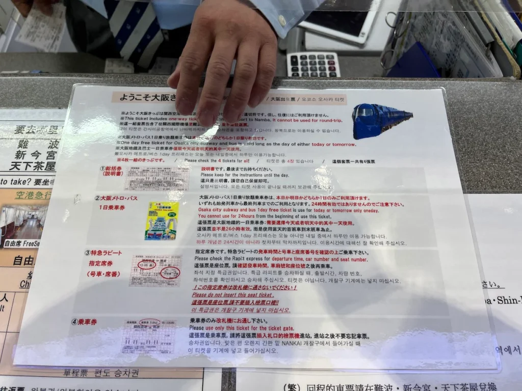 저는 라피트 편도권+오사카 메트로 1일권이 합쳐진 패스를 사전에 구입했어서 교환권으로 창구에서 교환받았어요.
