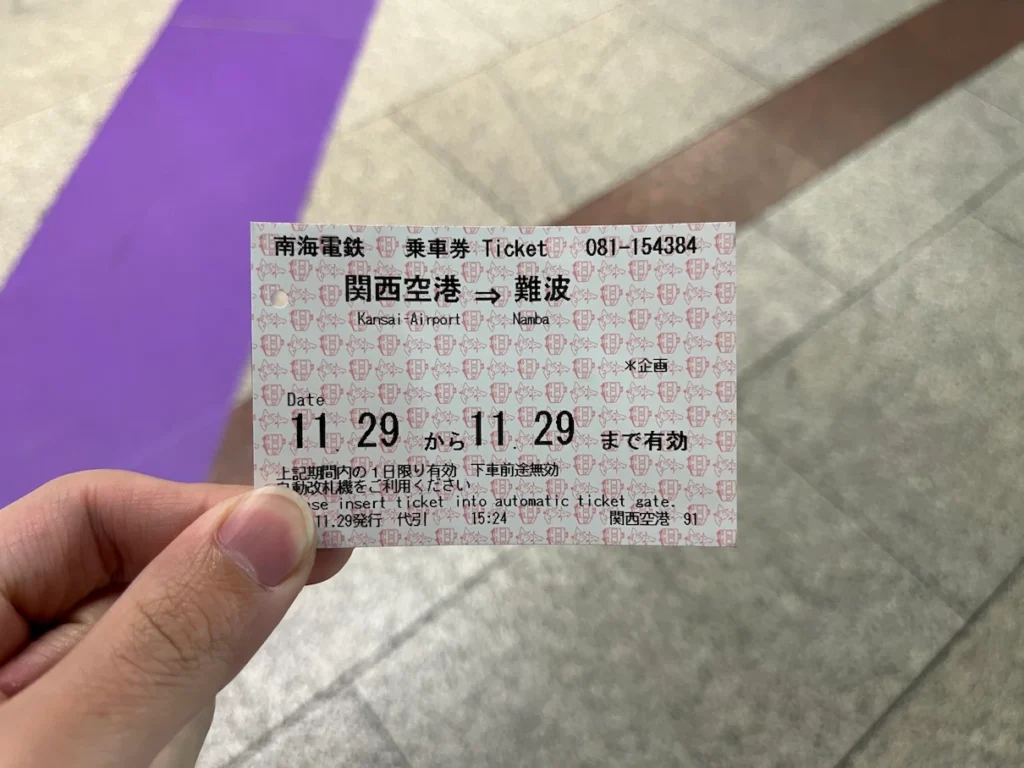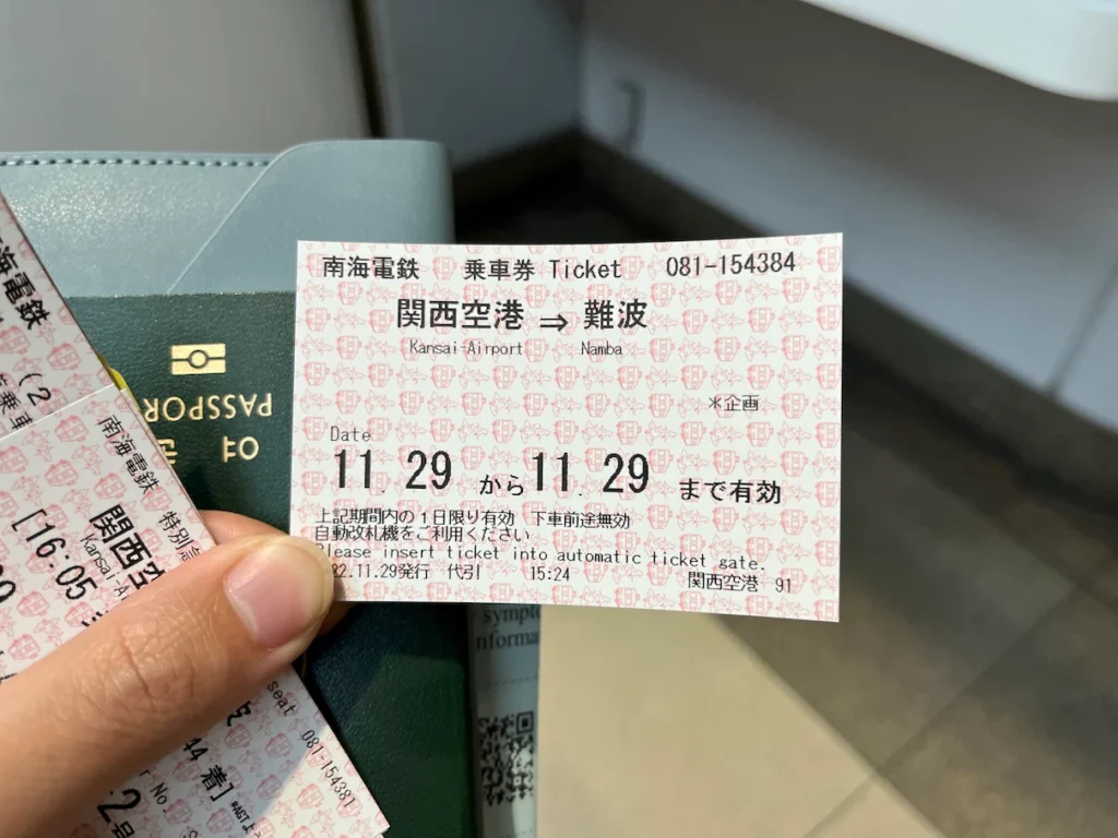 공항에서 난바로 가는 티켓!