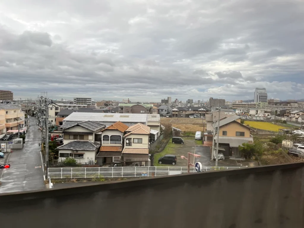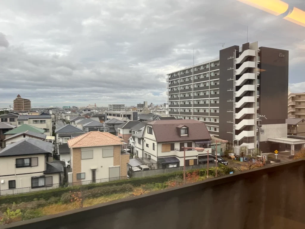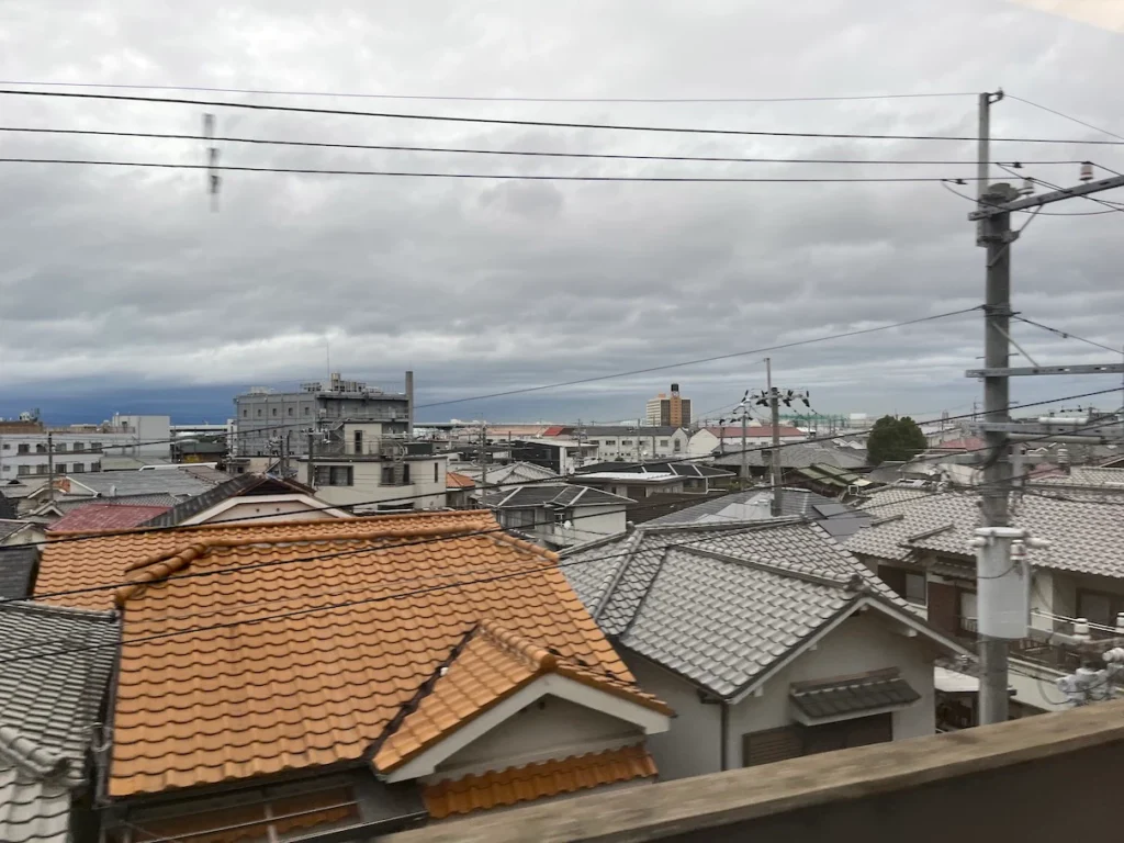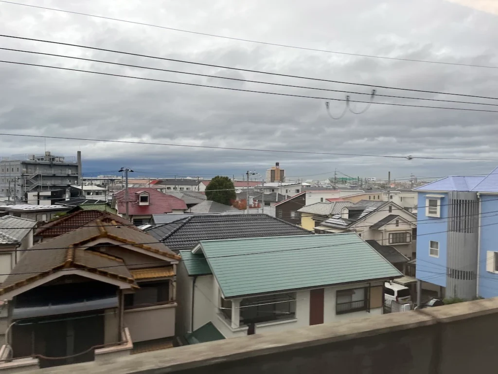 저 멀리 보이는 하얀 열차는 특급 하루카, 지하철처럼 보이는 열차는 공항급행이에요.
