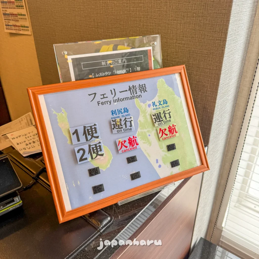 왓카나이역 근처의 페리 터미널에서 근처 섬인 ‘리시리섬’과 ‘레분섬’에 가는 사람도 꽤 있는데 오늘은 날씨가 좋지 않은지 결항편이 보이네요 😅