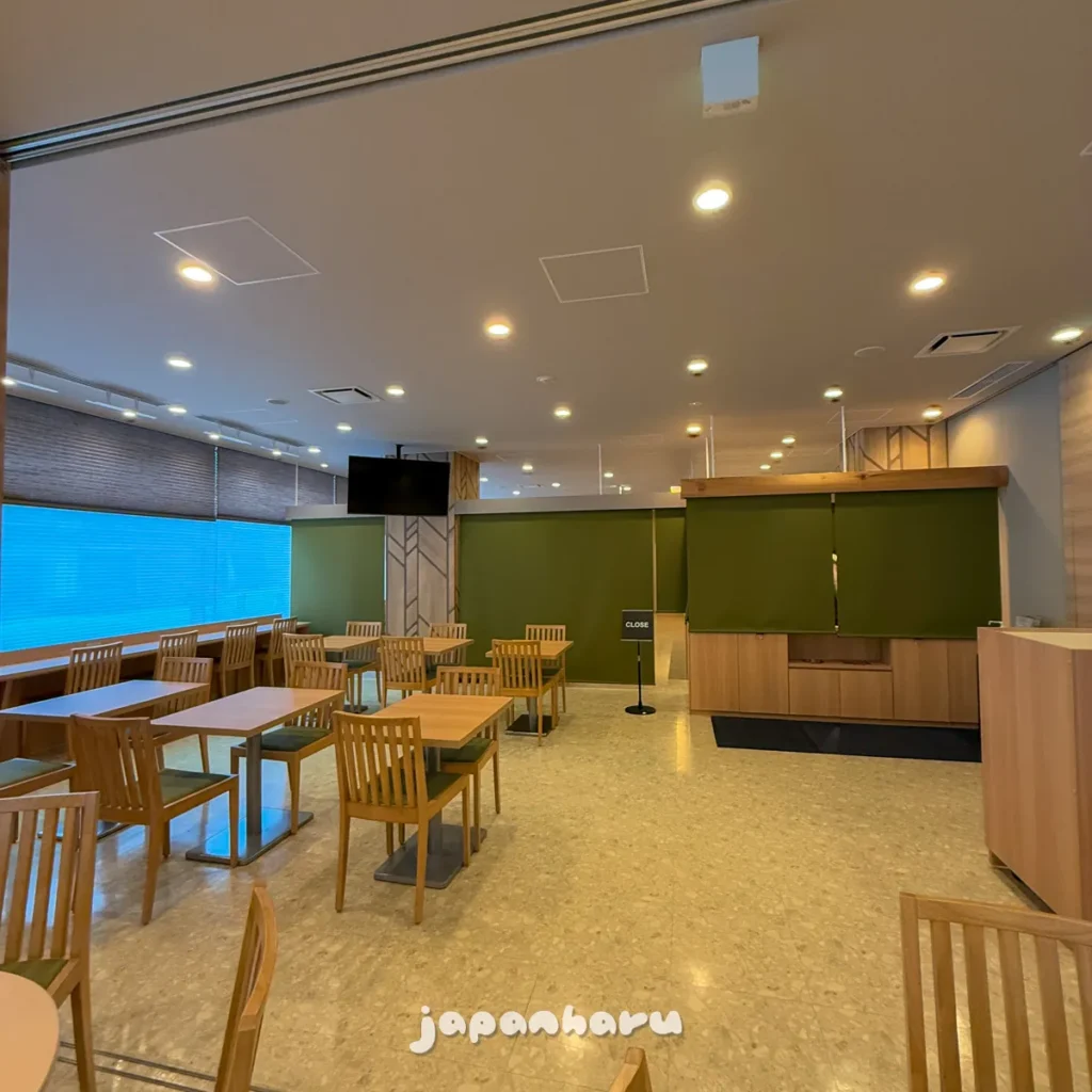 체크인을 하고 엘리베이터로 가는 길에 지금은 조식 시간도 야식 간장라멘 시간도 아니라서 라운지 공간처럼 활용하고 있는 식당 일부가 보였어요.