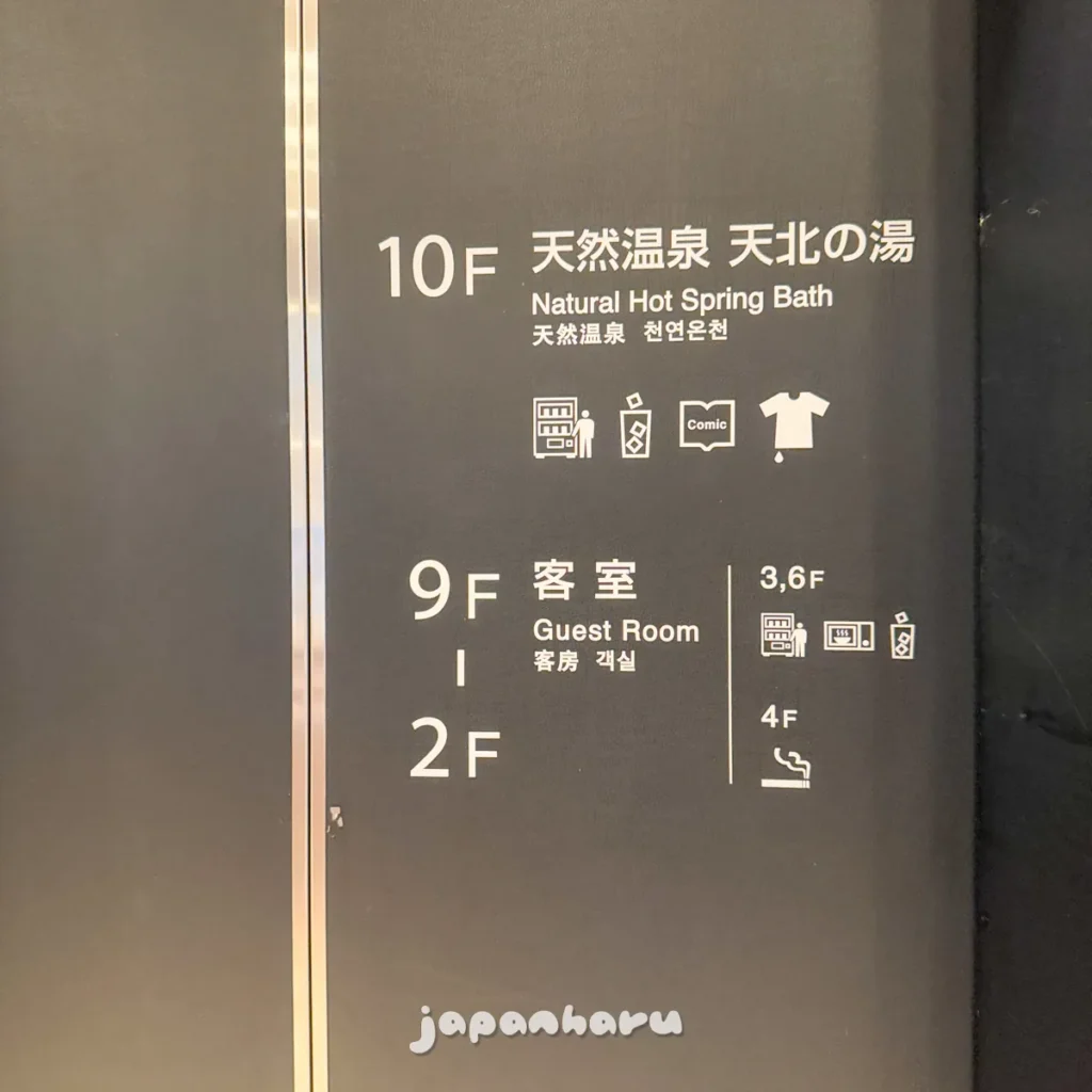 호텔은 10층짜리 건물인데, 다른 도미 인 지점들과 마찬가지로 최상층인 10층에 대욕장이 있고 자판기와 제빙기, 코인세탁기가 있어요.