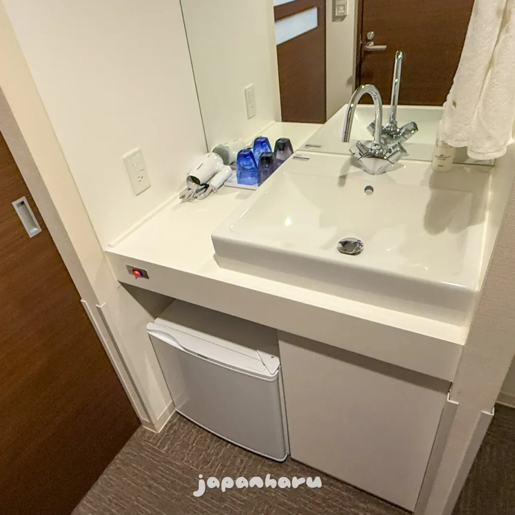 세면대 아래에 미니 냉장고가 있는 것도 다른 지점들과 동일한 모습이네요 ☺️