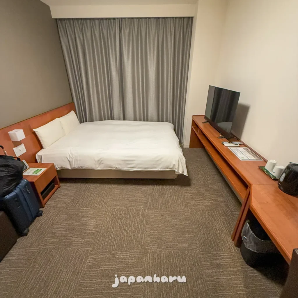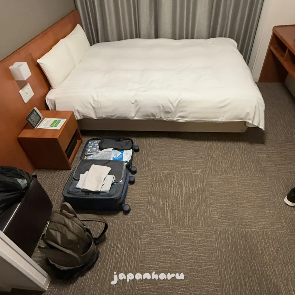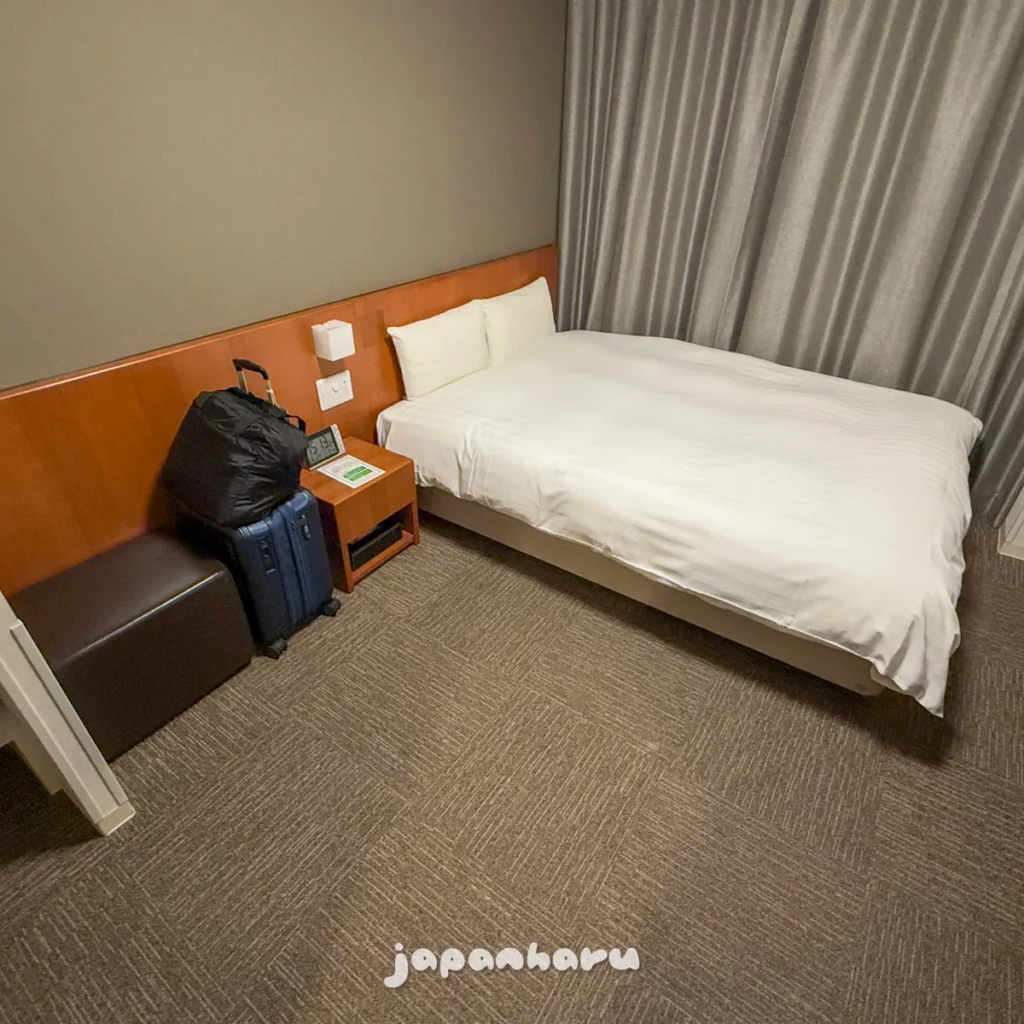 도미 인 왓카나이에는 더블룸과 트윈룸만 있어서 싱글룸 대신 더블룸을 예약했어요.