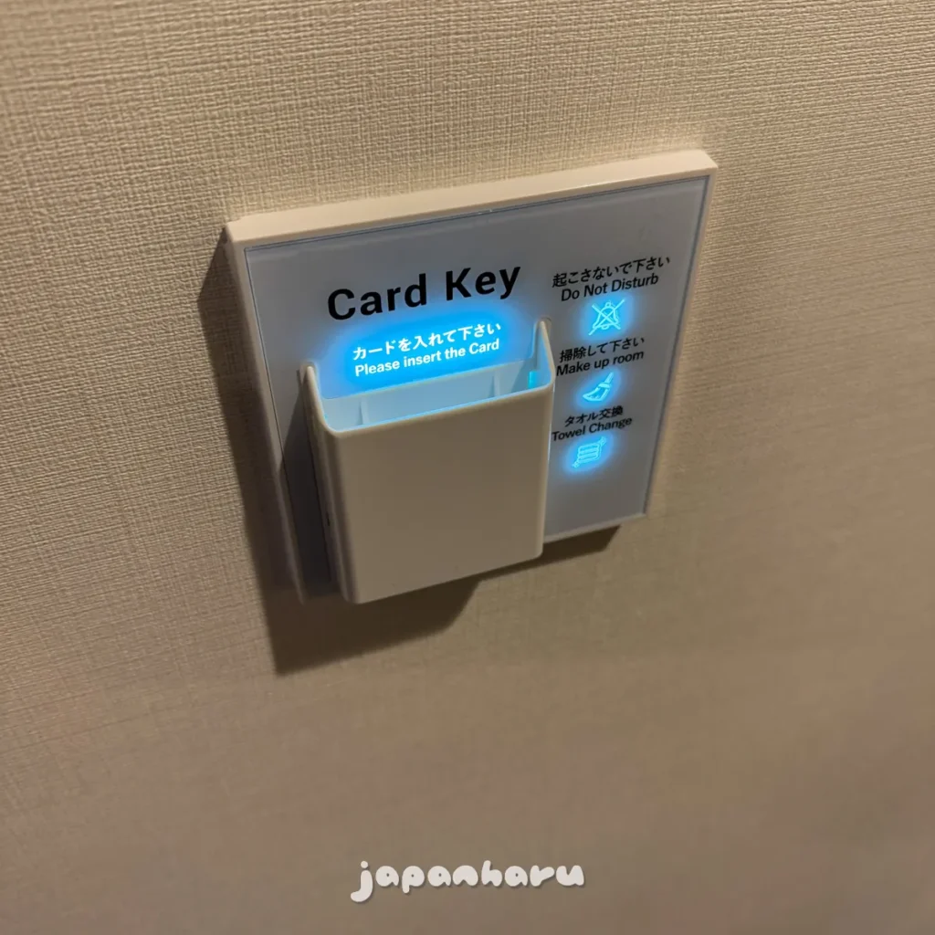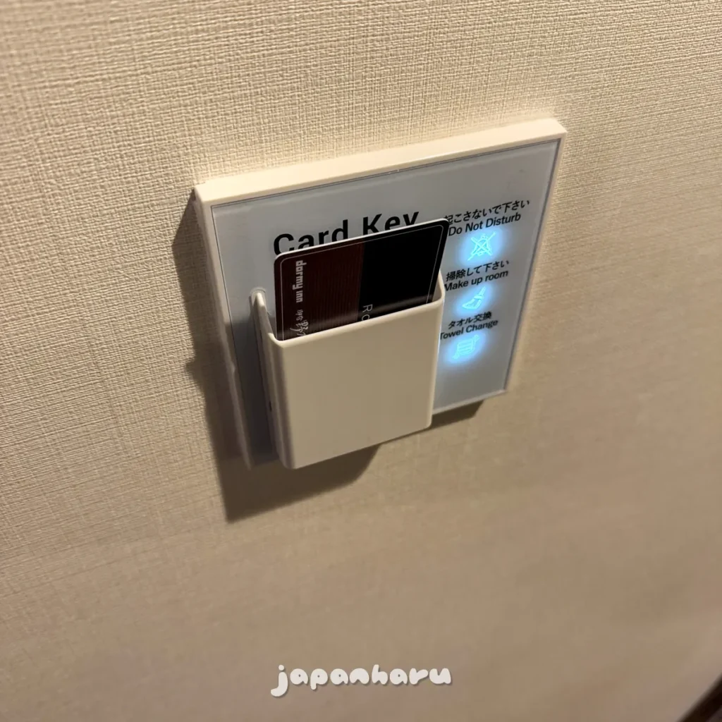 카드키를 꽂는 곳은 이렇게 생겼는데 일반적으로 자석으로 붙이거나 버튼으로 누르는 형태로 있는 ‘방해금지’, ‘청소요청’ 등이 카드키 옆에 터치식으로 되어 있었어요.