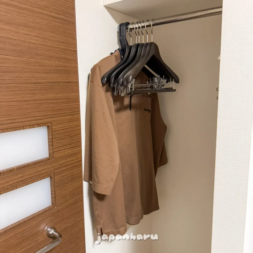 옷장은 오픈형인데, 옷장 안에는 상하의가 나뉘어진 실내복과 수건이 있어요.