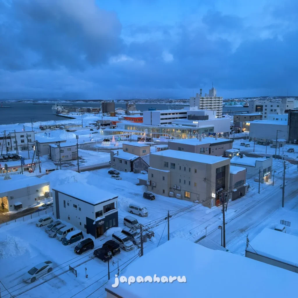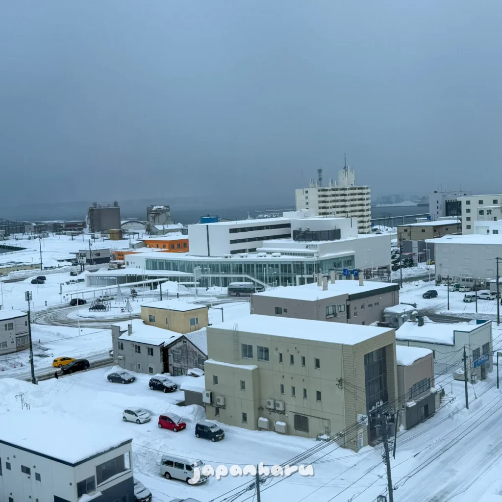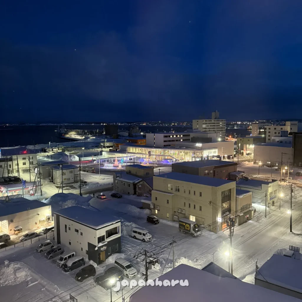 건물 구조를 생각하면 전망은 방향에 따라 다를 수 있겠지만, 제가 묵은 객실은 왓카나이역 쪽이 보이는 남쪽 방향 전망이었어요!
