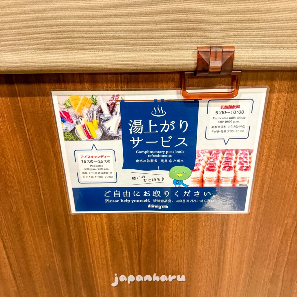 가장 큰 차별점인 대욕장부터 저녁에 주는 간장라멘, 목욕 후의 아이스크림/요구르트, 무료로 쓸 수 있는 코인세탁기, 요즘은 주는 곳이 별로 없는 객실 내 무료 생수까지…