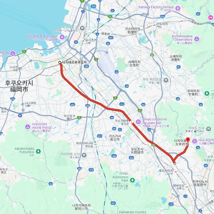 하카타에서 다자이후에 가려면 라이너버스인 ‘타비토’를 타는게 편하지만, 텐진에서 가려면 니시테츠 전철을 이용하는 편이 좋아요.