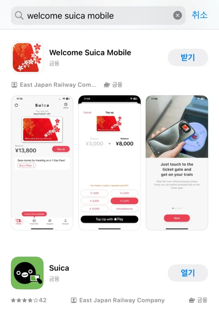 웰컴 스이카 모바일도, 스이카를 애플페이에 등록해두고 쓰는 것도 모두 아이폰에서만 가능하니 웰컴 스이카 모바일은 제가 보기엔 그닥 메리트가 있어보이진 않는 것 같아요.