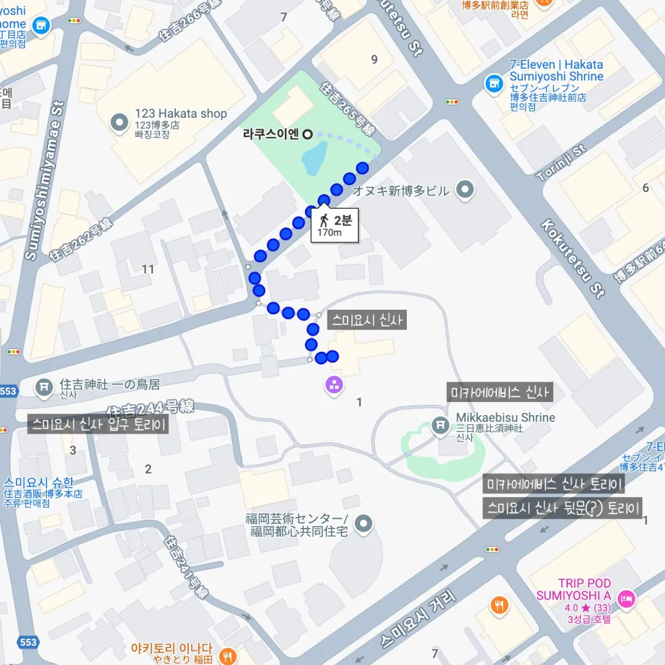 🚃 가는방법: 하카타역 서쪽출구(하카타출구)에서 걸어서 약 15분