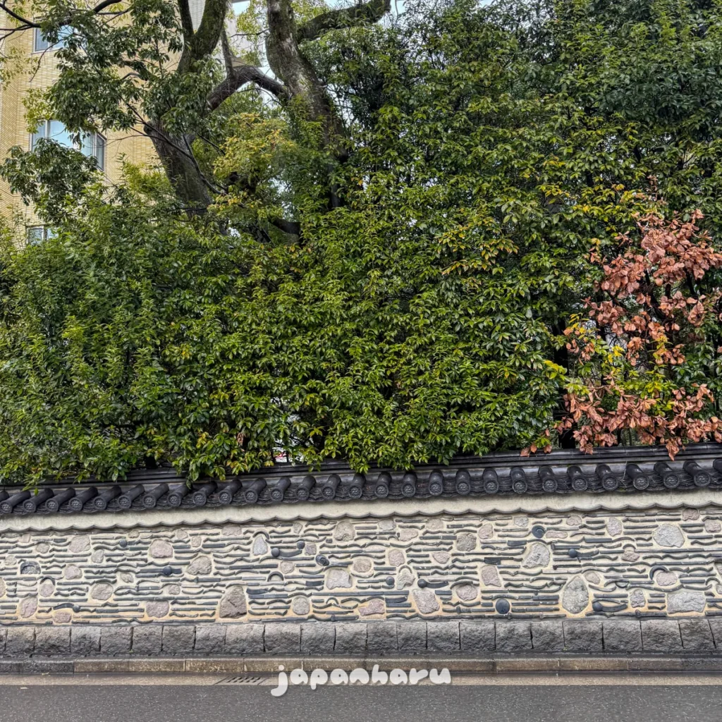 이렇게 라쿠스이엔 담장 옆을 보며 스미요시 신사로 향해요.
