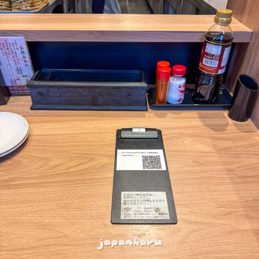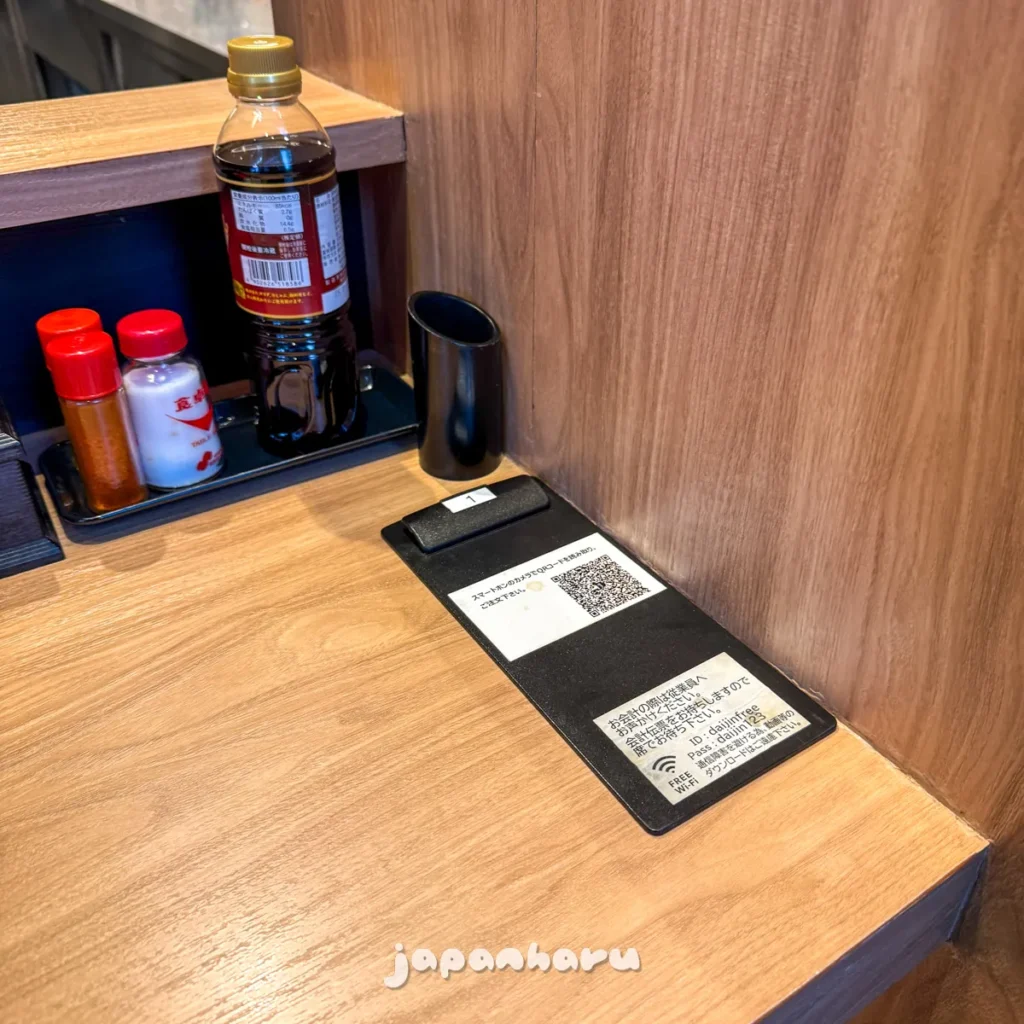 주문을 하고 QR코드가 적힌 판은 옆으로 치워두고, 잠시 기다려요.