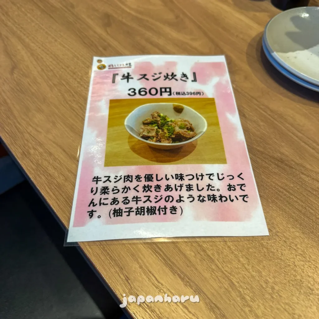 신기해보이는 메뉴가 있어 봤더니 소 힘줄 조림(규스지타키)이라는 메뉴였어요.