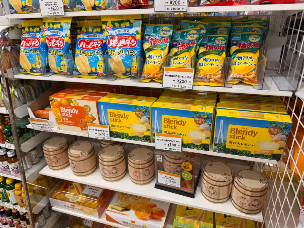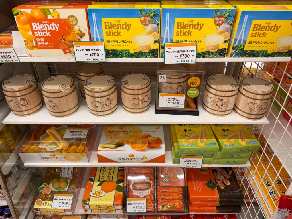 이 편의점은 꽤나 규모가 있는 편의점이었는데 거기에 면세도 가능한 점포라 그런지 마쓰야마의 특산품이라 할 수 있는 귤과 관련된 이런저런 상품들이 많이 있었어요.