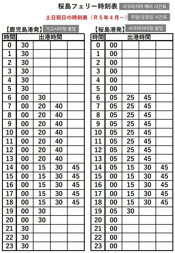 ⏰ 사쿠라지마 페리 시간표