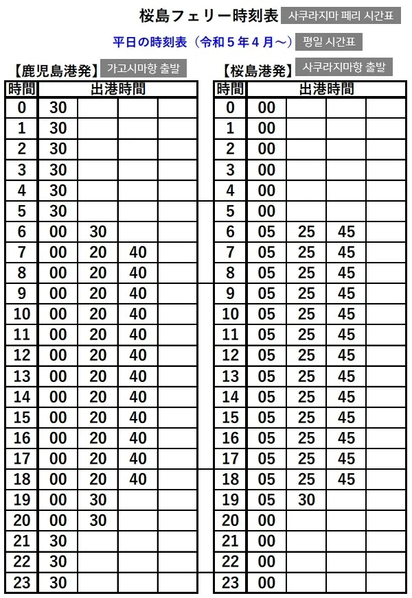 - 2024. 08. 12. 사쿠라지마 페리 변경사항 수정(요금/시간표 등)