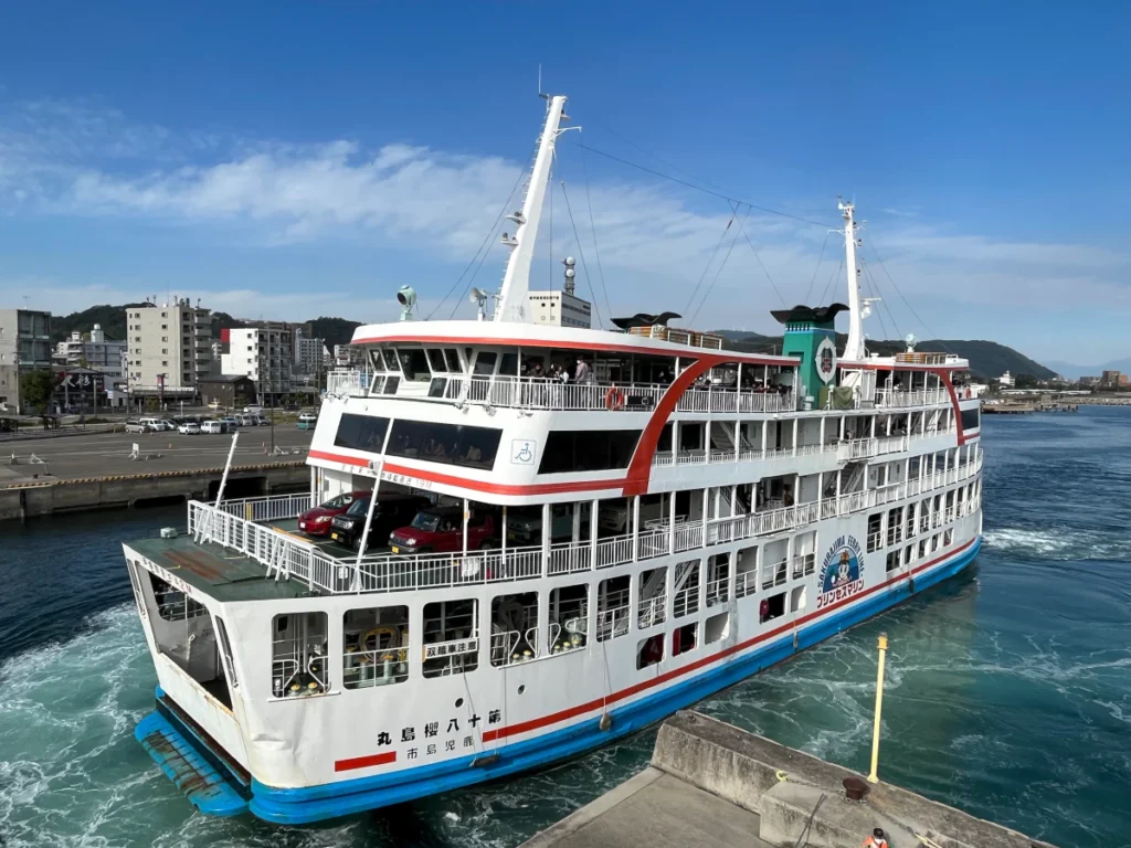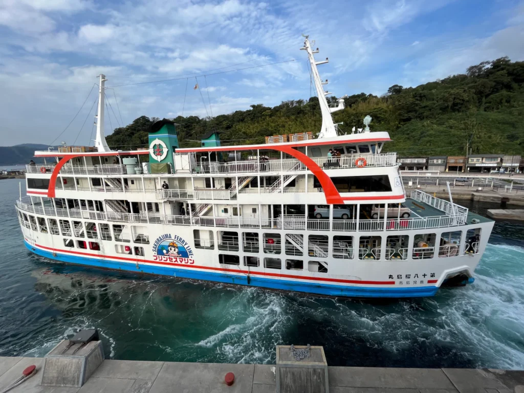 1️⃣ 일반적인 가고시마-사쿠라지마 간 페리로 편도로 약 15분 걸려요.