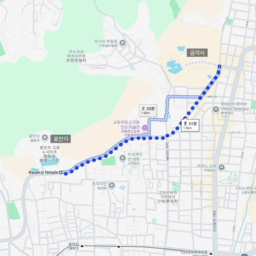 료안지에서 나와 비교적 가까운 금각사로 가기로 했어요.