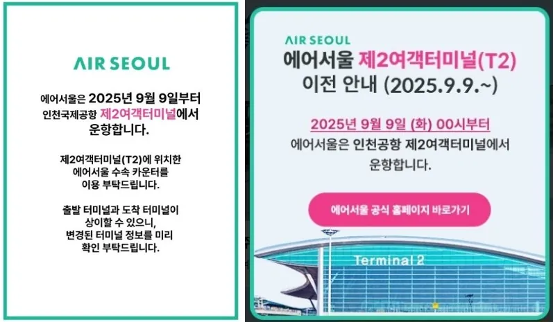 혹시라도 9월 9일이나 이후에 실수로 에어서울을 타려고 1터미널에 갔다면…?