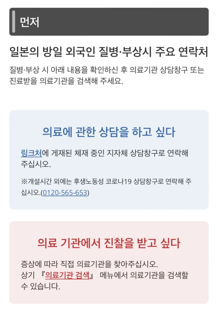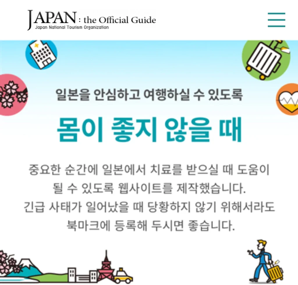 🔗 JNTO: 일본을 안심하고 여행하실 수 있도록 몸이 좋지 않을 때 도움이 되는 가이드