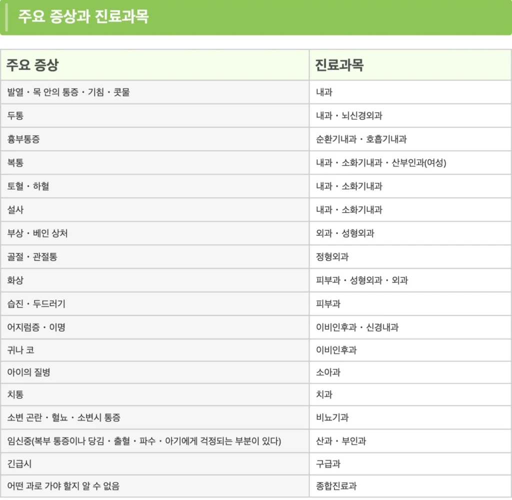 주요 증상에 따른 진료과목이에요!