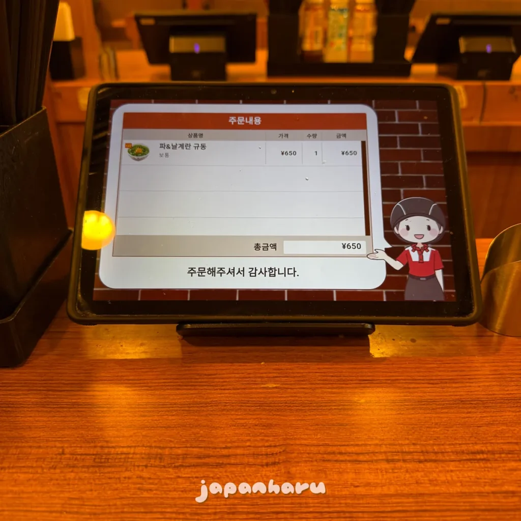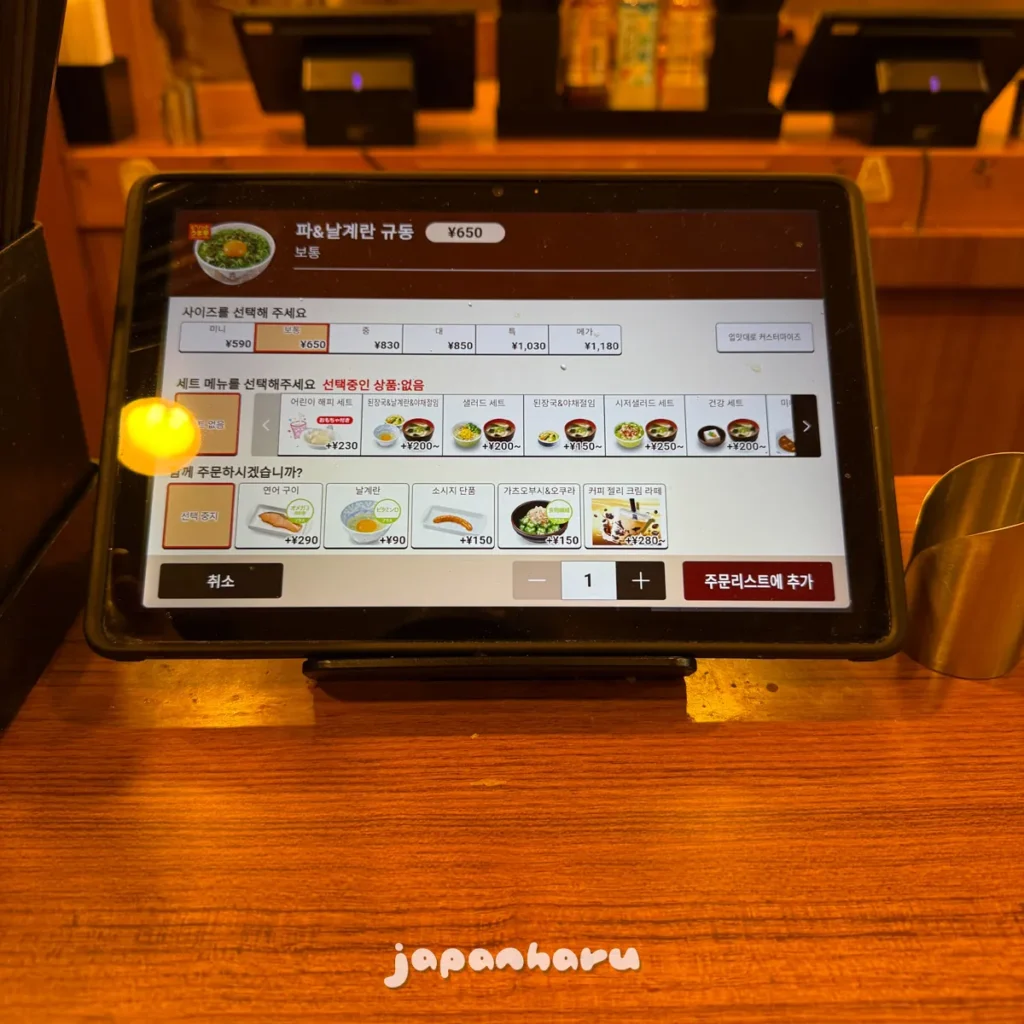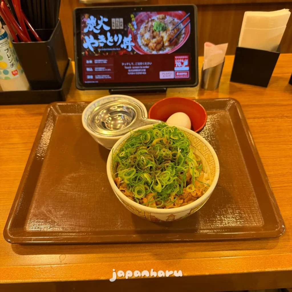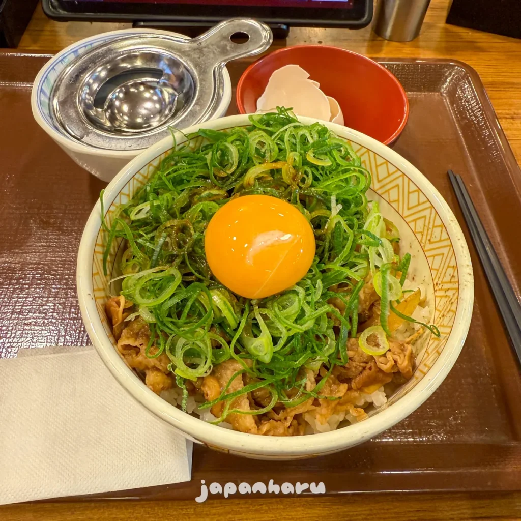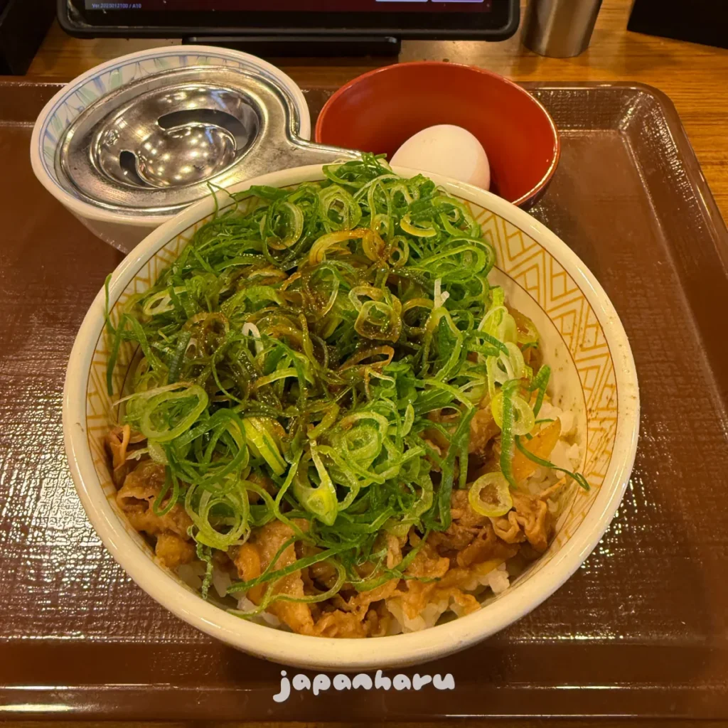 그냥 규동도 괜찮긴 하지만, 파와 계란이 추가되어 맛이 좀 더 좋은 느낌이라 규동집에 가면 주로 이 메뉴로 주문하곤 해요 ☺️